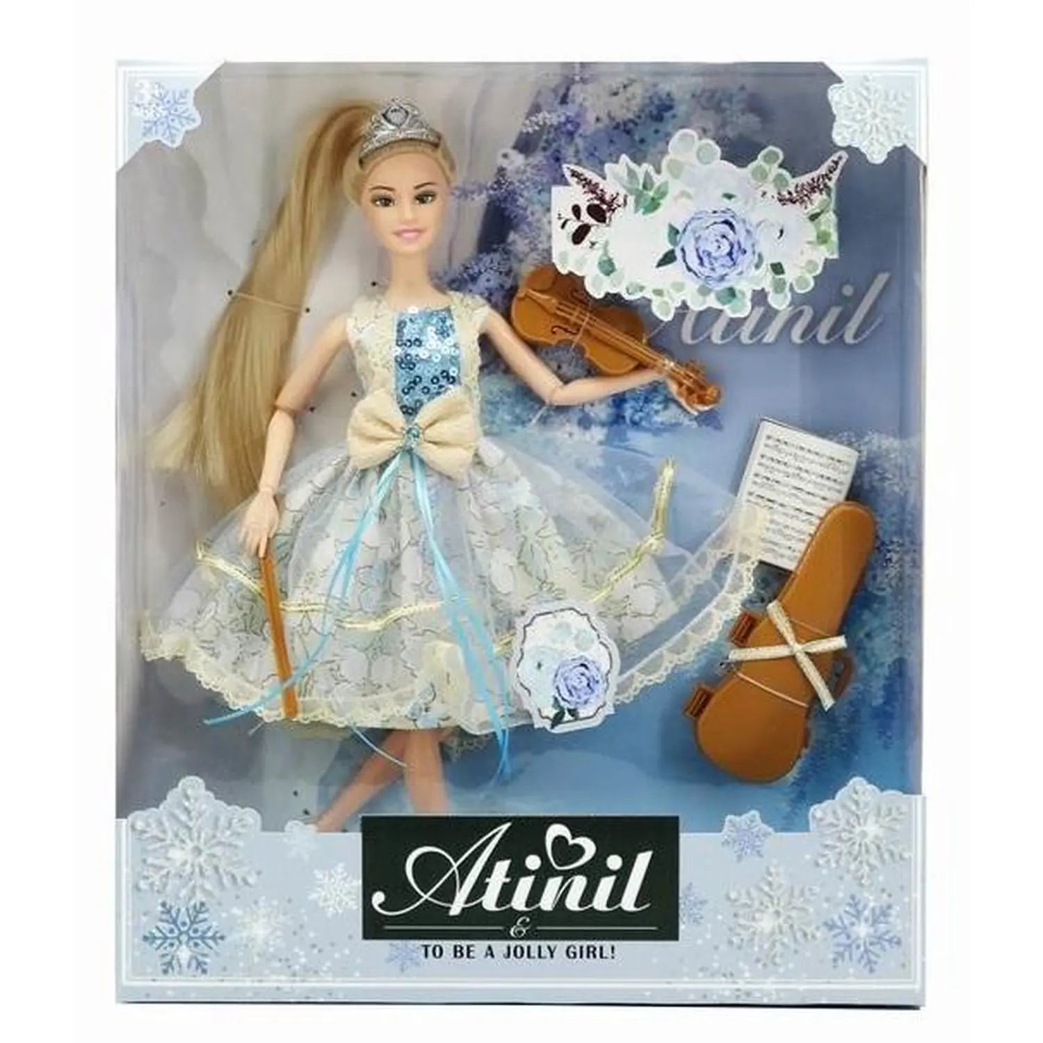 Piękna lalka Atinil w eleganckim stroju zimowym ze skrzypcami