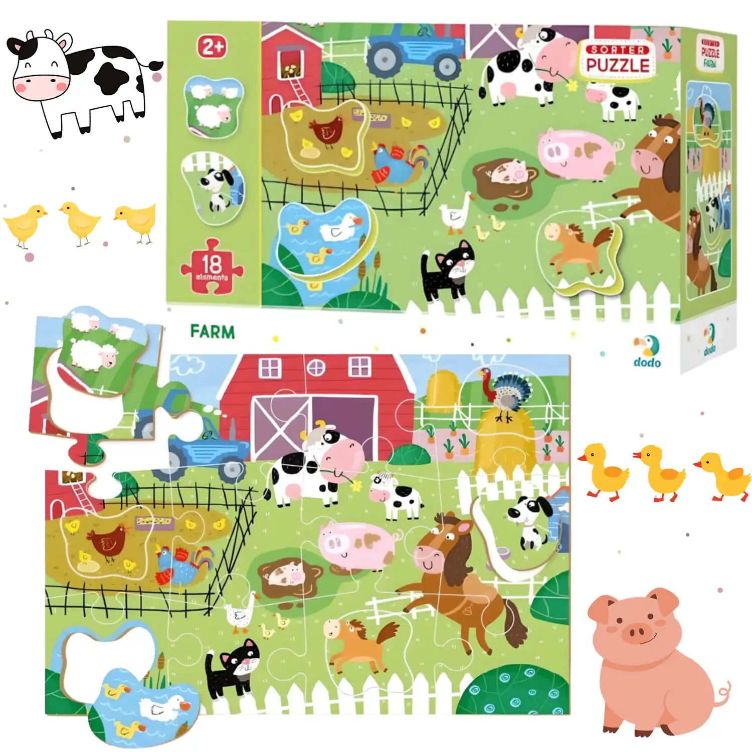 PUZZLE SORTER FARMA NAUKA POPRZEZ ZABAWĘ ZWIERZĘTA WIEJSKIE 18 ELEMENTÓW
