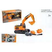Zestaw składa się z 75 precyzyjnie wykonanych elementów, które pozwalają dziecku na samodzielne złożenie funkcjonalnej koparki. Zabawka wyposażona jest w ruchome ramię hydrauliczne, obrotową kabinę oraz gąsienice zapewniające stabilność podczas zabawy. W zestawie znajdują się również narzędzia montażowe oraz instrukcja krok po kroku. Koparka wykonana jest z wysokiej jakości plastiku, bezpiecznego dla dzieci. Po złożeniu zabawka może służyć do kreatywnej zabawy w budowniczego, rozwijając wyobraźnię i umiejętności motoryczne. Idealny prezent dla małych miłośników maszyn budowlanych i konstruowania.