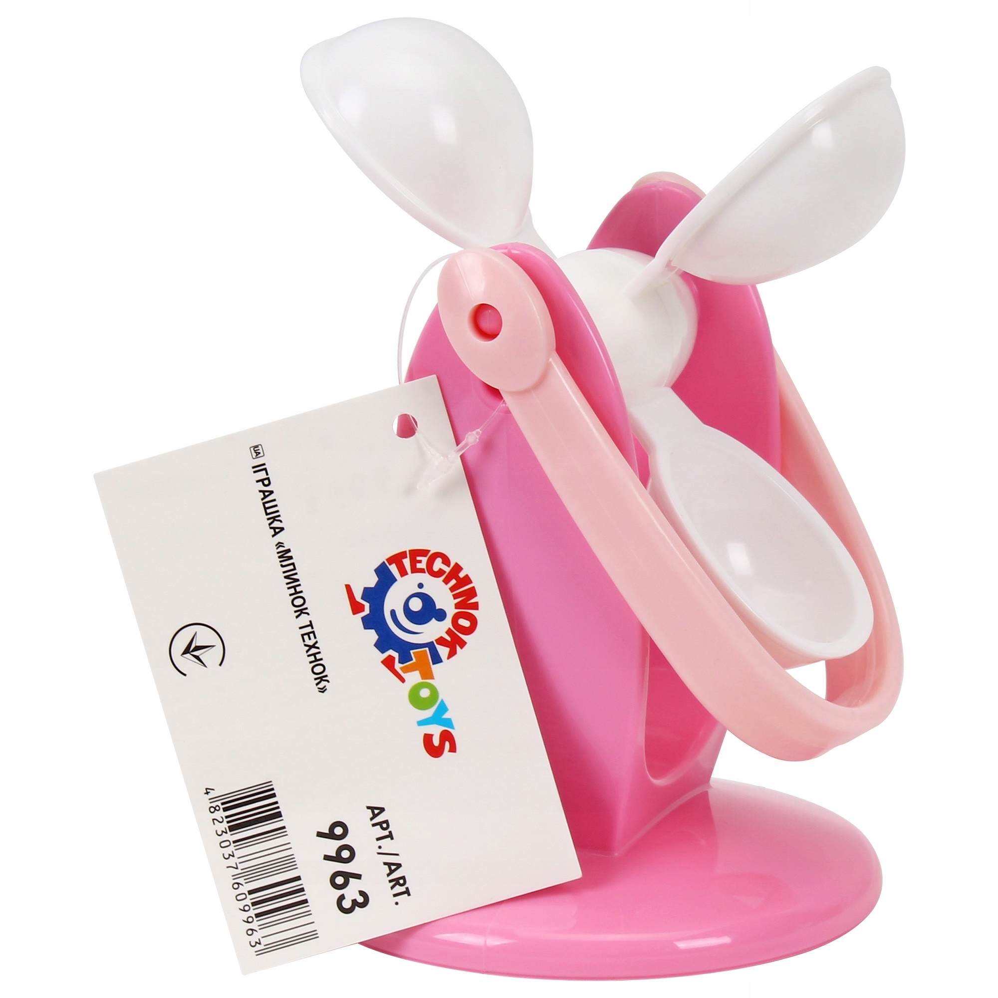 Zabawka "Wiatrak TechnoK" wykonana jest w różnych kolorach: jasnoróżowym i zielono-czerwonym.