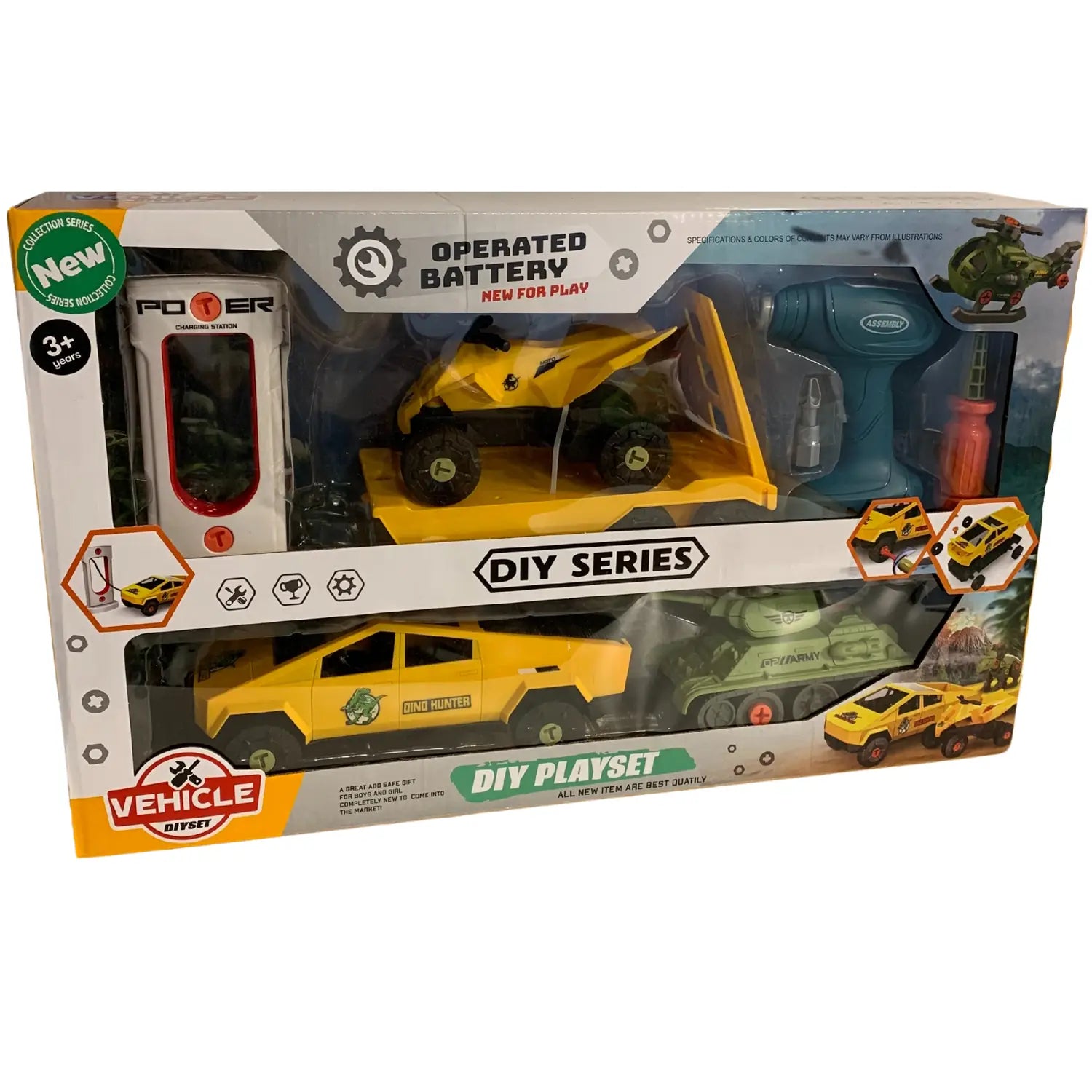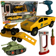 ZESTAW SAMOCHÓD DO MONTAŻU Z PRZYCZEPĄ QUAD CZOŁG WIERTARKA ŚRUBOKRĘT