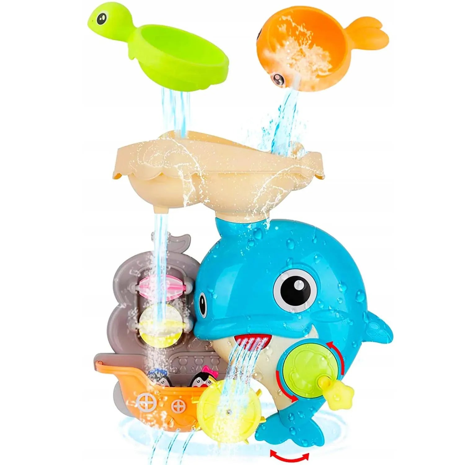 Набір іграшок для ванни: дельфін, водоспад, черпак для води, черепаха, рибка