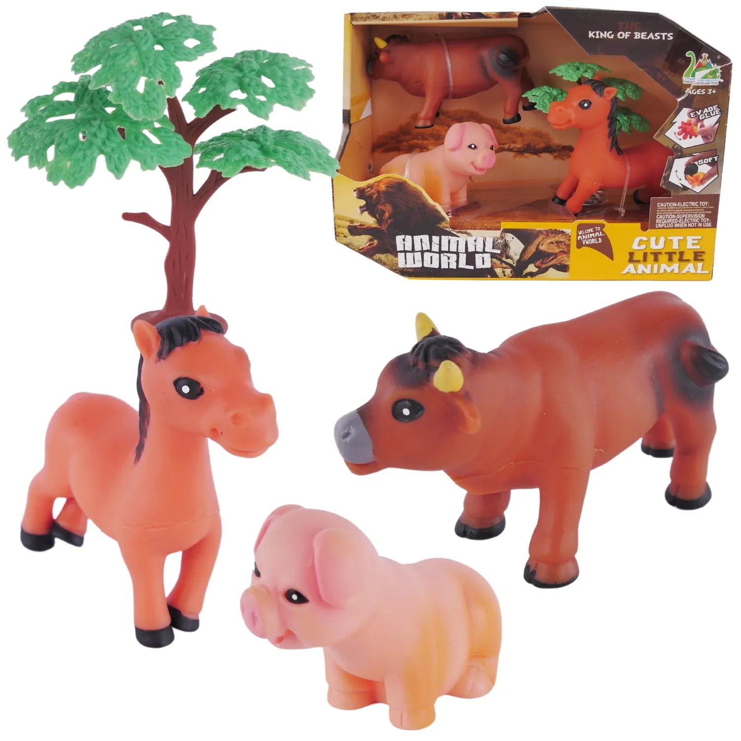 Набір сільськогосподарських тварин: корова, свиня, кінь, дерево, фермерські розваги