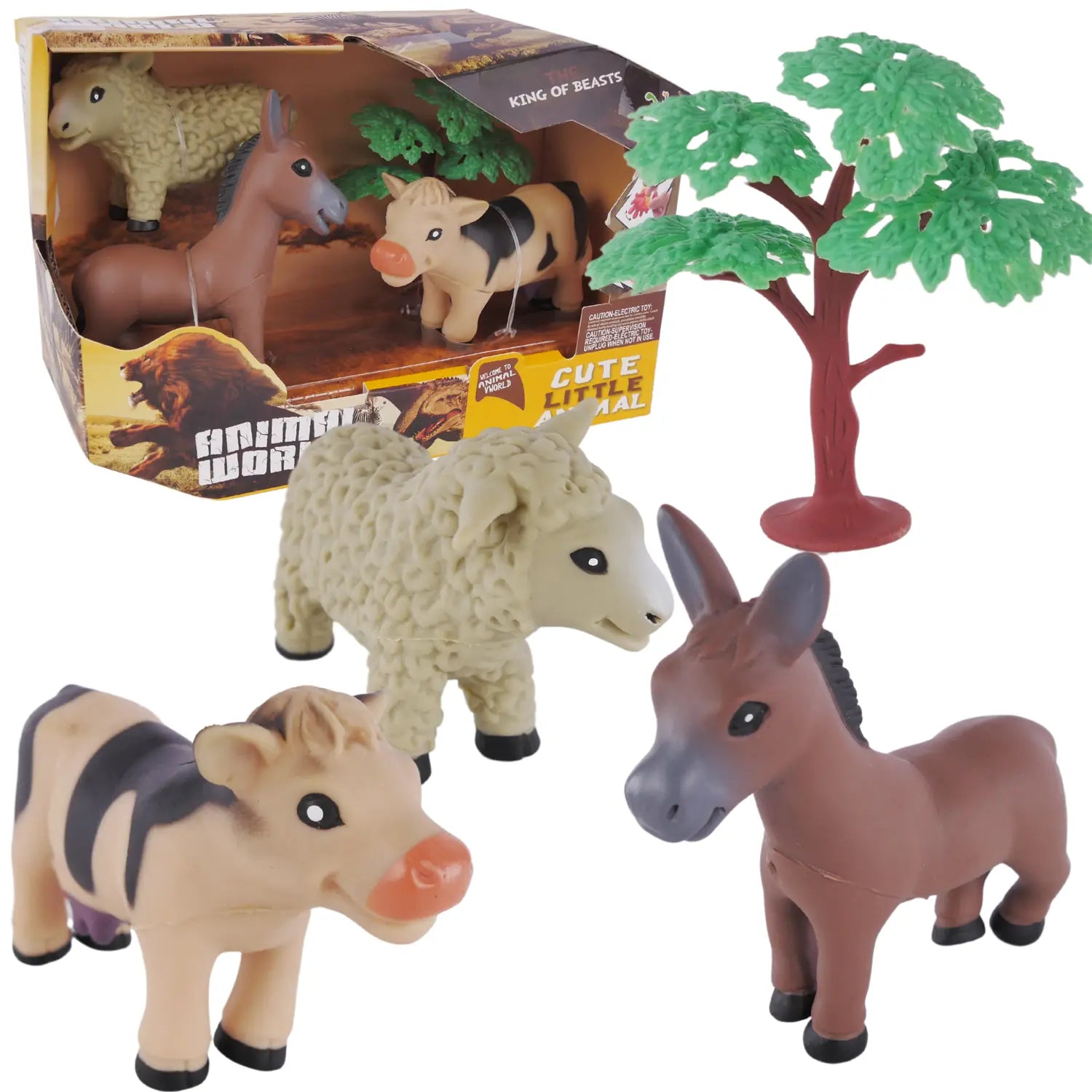 Набір сільськогосподарських тварин: корова, вівця, віслюк, дерево, фермерські розваги
