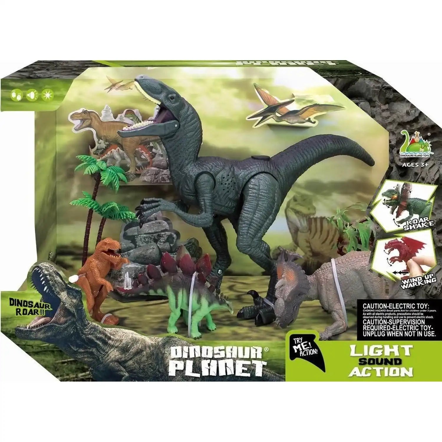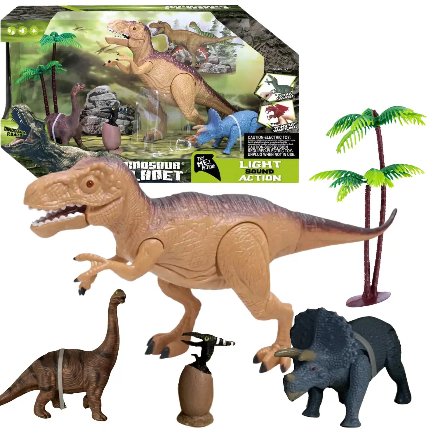 НАБІР З 4 ФІГУРОК ДИНОЗАВРІВ, 2 ДЕРЕВА, ЗВУКОВІ ТА СВІТЛОВІ ЕФЕКТИ