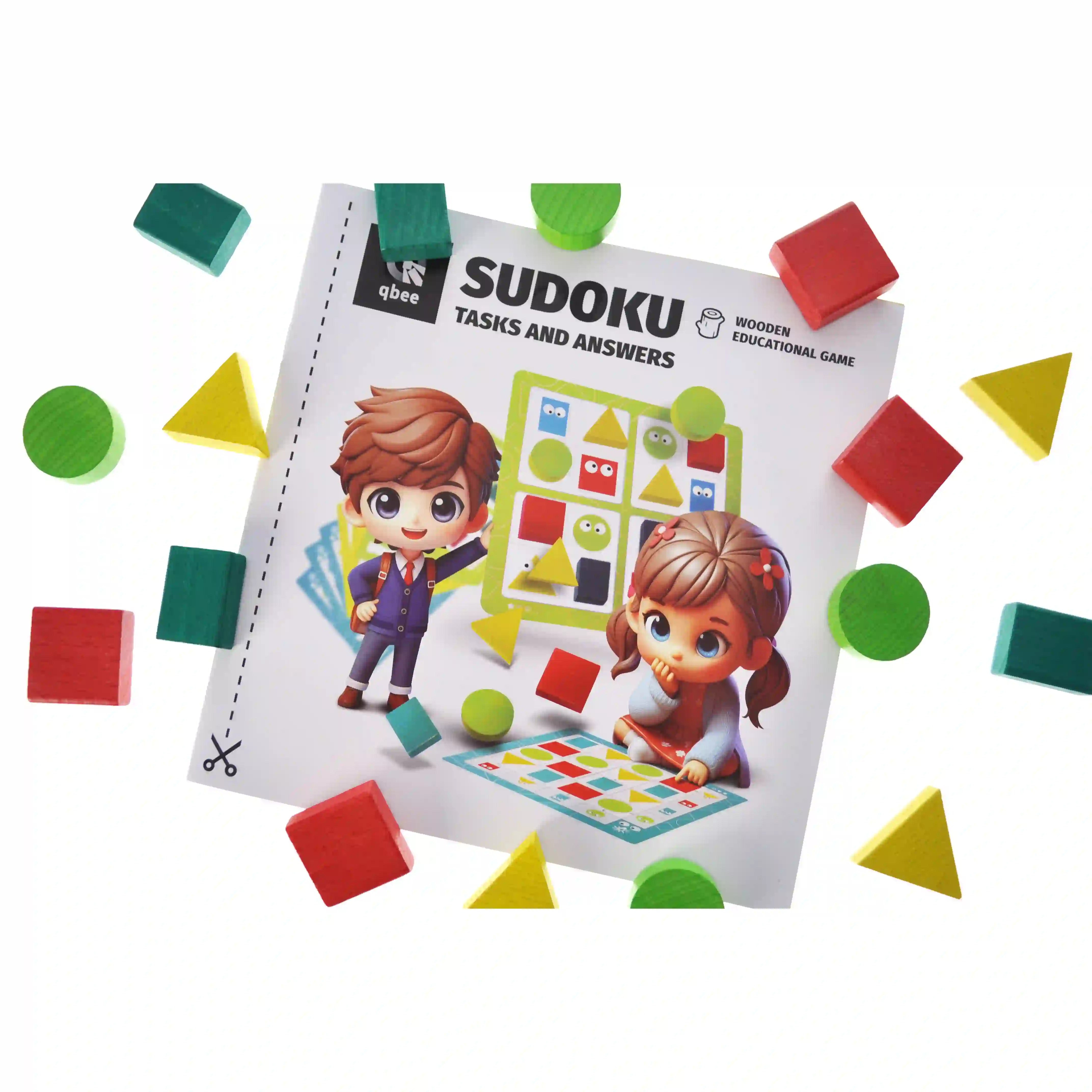 Дерев'яна навчальна гра QBEE Геометричне судоку, 16 деталей