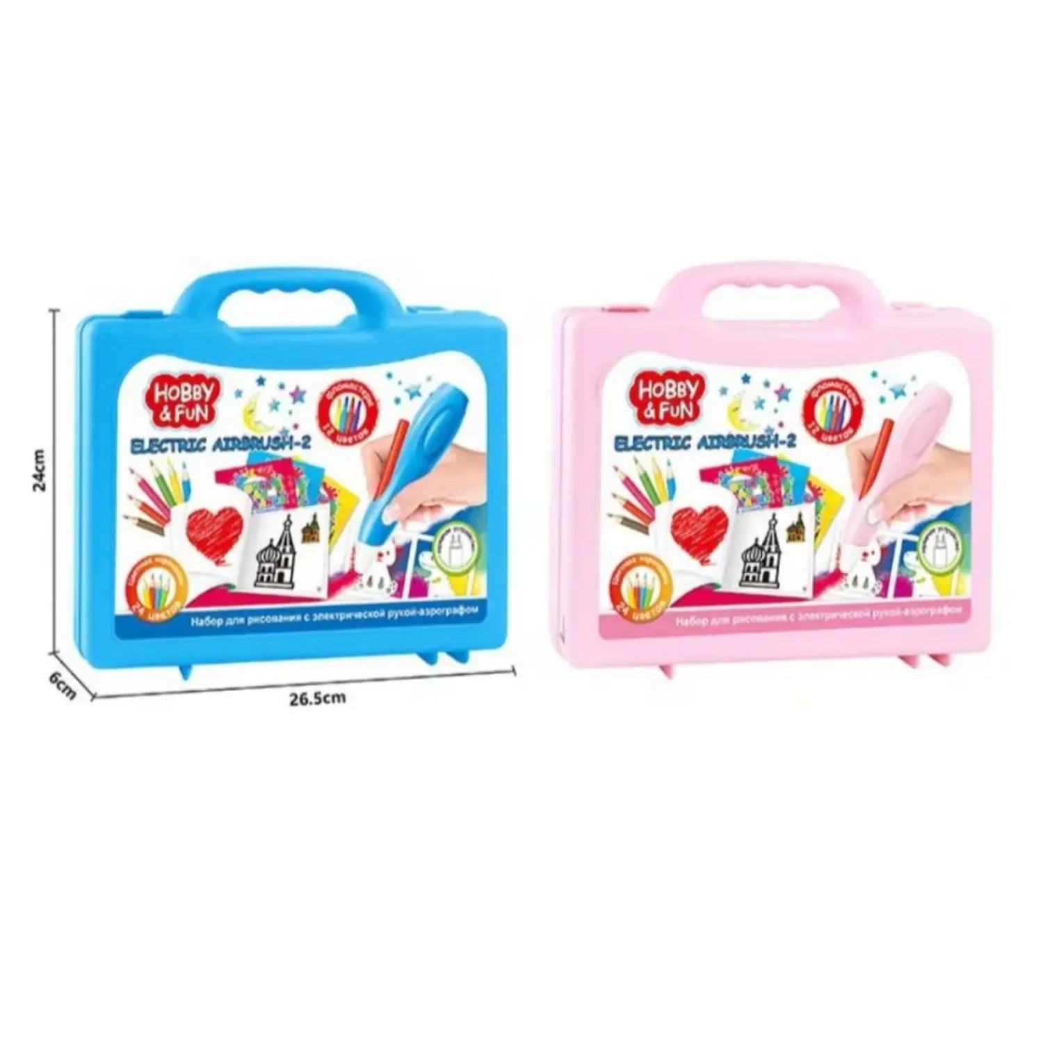 Електричний аерограф – це чудовий інструмент, який дозволяє дітям малювати новим та інноваційним способом. Просто виберіть ручку потрібного кольору, вставте її в пристрій, а потім натисніть кнопку на аерографі, щоб розпорошити колір на поверхню. Це дозволяє дітям створювати вражаючі та креативні картини за допомогою аерографа. Крім того, аерограф можна підключити через USB , що дозволяє заряджати його та використовувати триваліше.