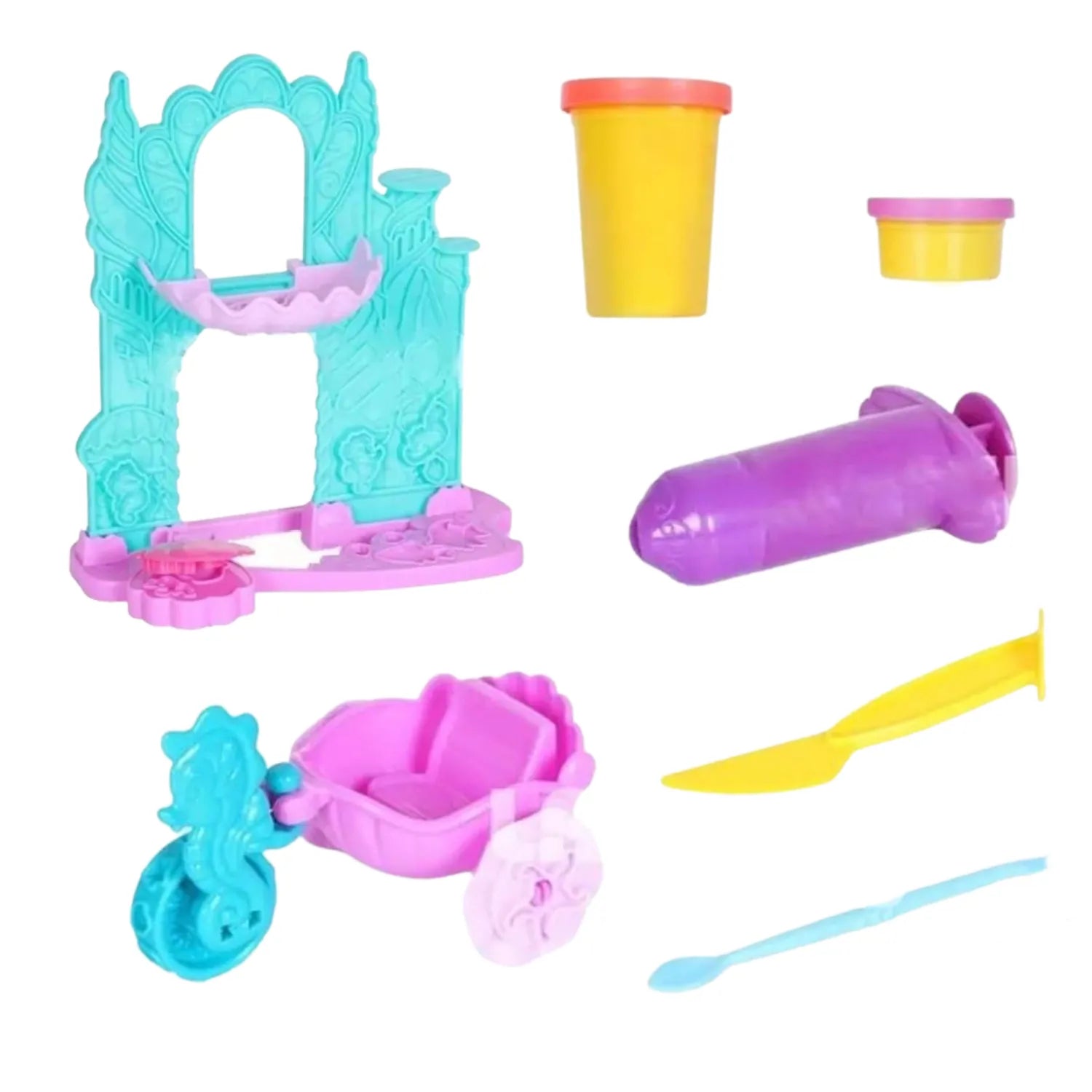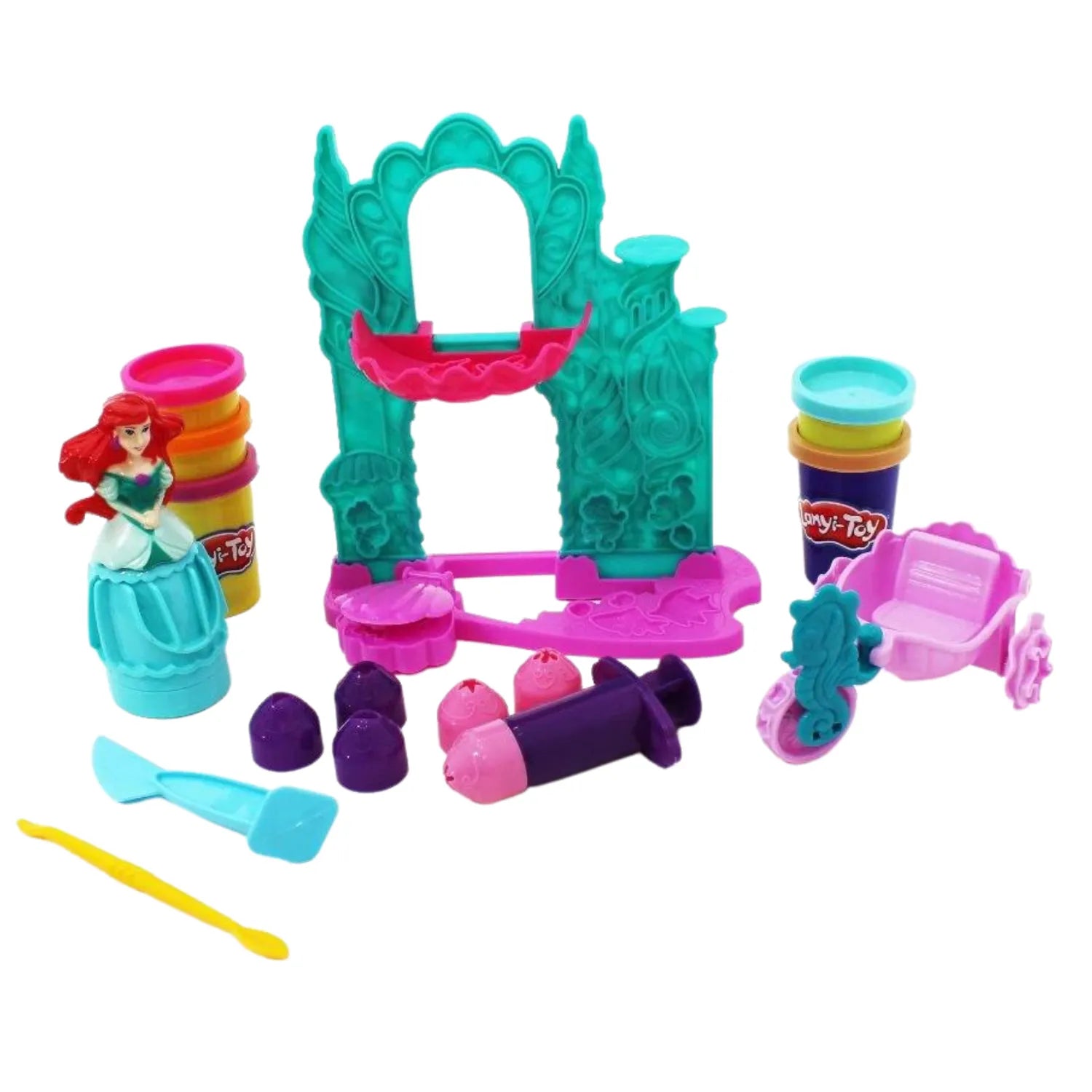 Набір містить різнокольорову глину для ліплення, яка ідеально підходить для створення деталей замку. У комплект також входять інші аксесуари, такі як фігурка принцеси, чарівний транспортний засіб тощо , для безкінечної розваги.