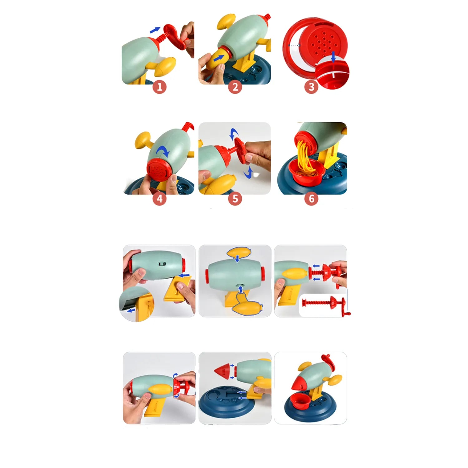 Ця унікальна іграшка дозволяє дітям створювати неповторні фігури з пластиліну. Форма ракети додає додаткової веселощі, дозволяючи їм створювати космічні творіння.