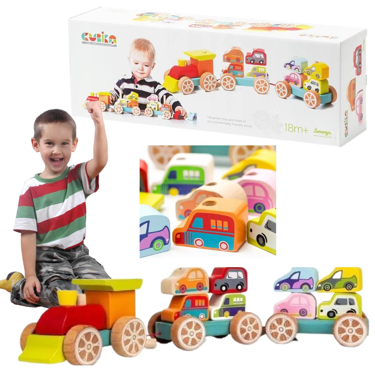 Дерев'яний поїзд з малюками Автомобілі Кубік