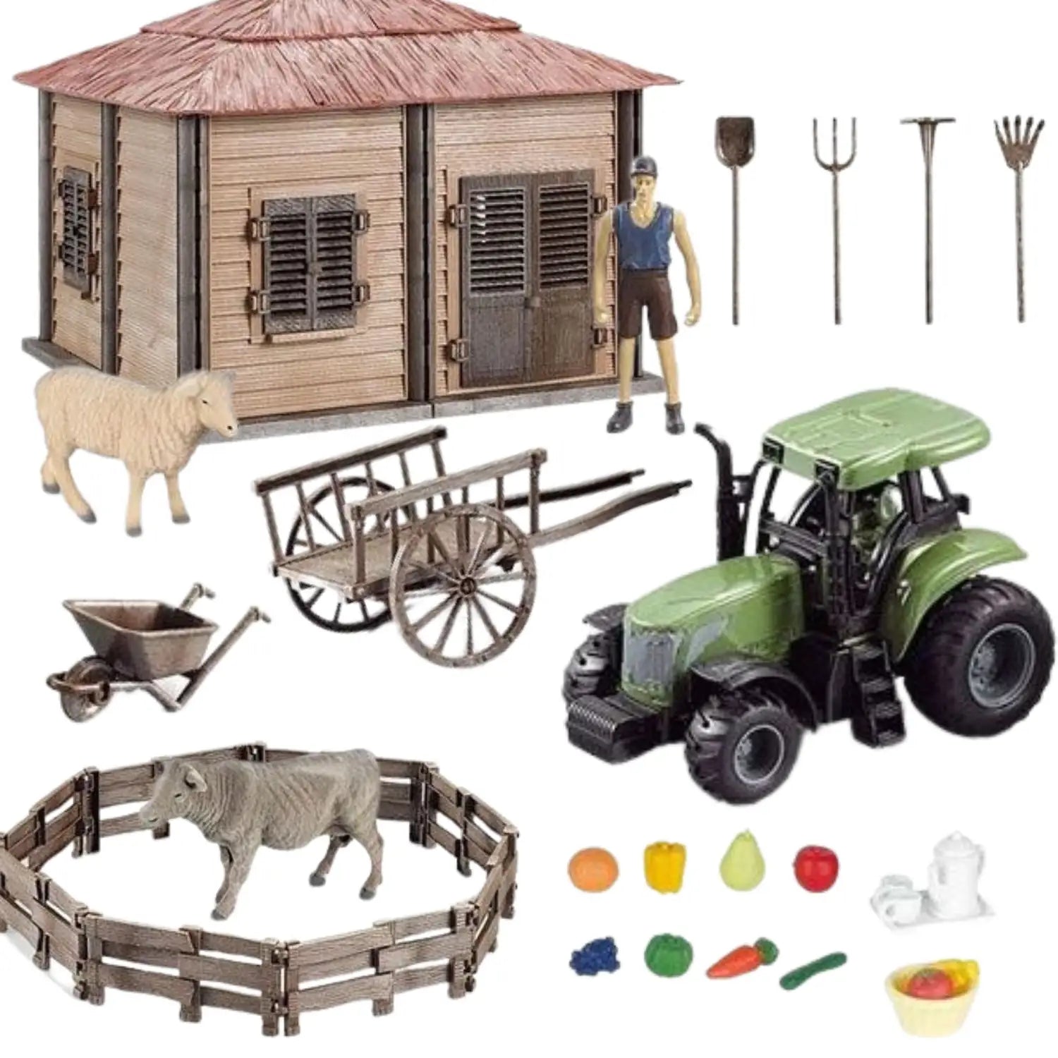 ВЕЛИКИЙ ФЕРМЕРСЬКИЙ БУДИНОК ФЕРМЕРА ТРАКТОР НАБІР ІНСТРУМЕНТІВ ТВАРИНИ ФІГУРКА ФЕРМЕРА