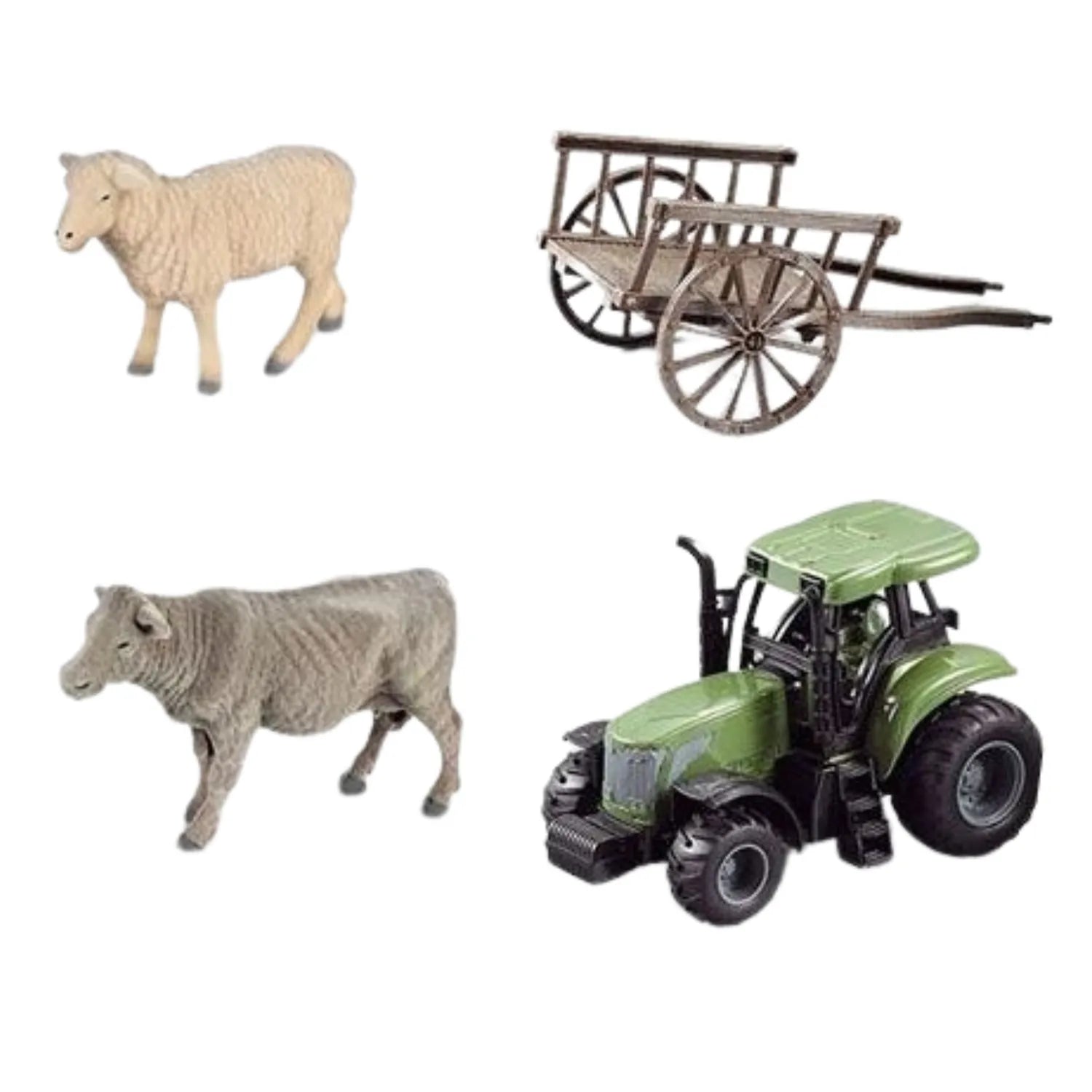 Трактор – це незамінне обладнання на фермі. Діти можуть використовувати його для перевезення тварин, прикріплення будівельного візка та виконання різних сільськогосподарських робіт. Набір включає сільськогосподарські інструменти, такі як лопата, вила та граблі . Ці інструменти можуть допомогти у сільськогосподарських роботах та підтримувати ферму у відмінному стані. Крім того, ферма включає тачку та візок.