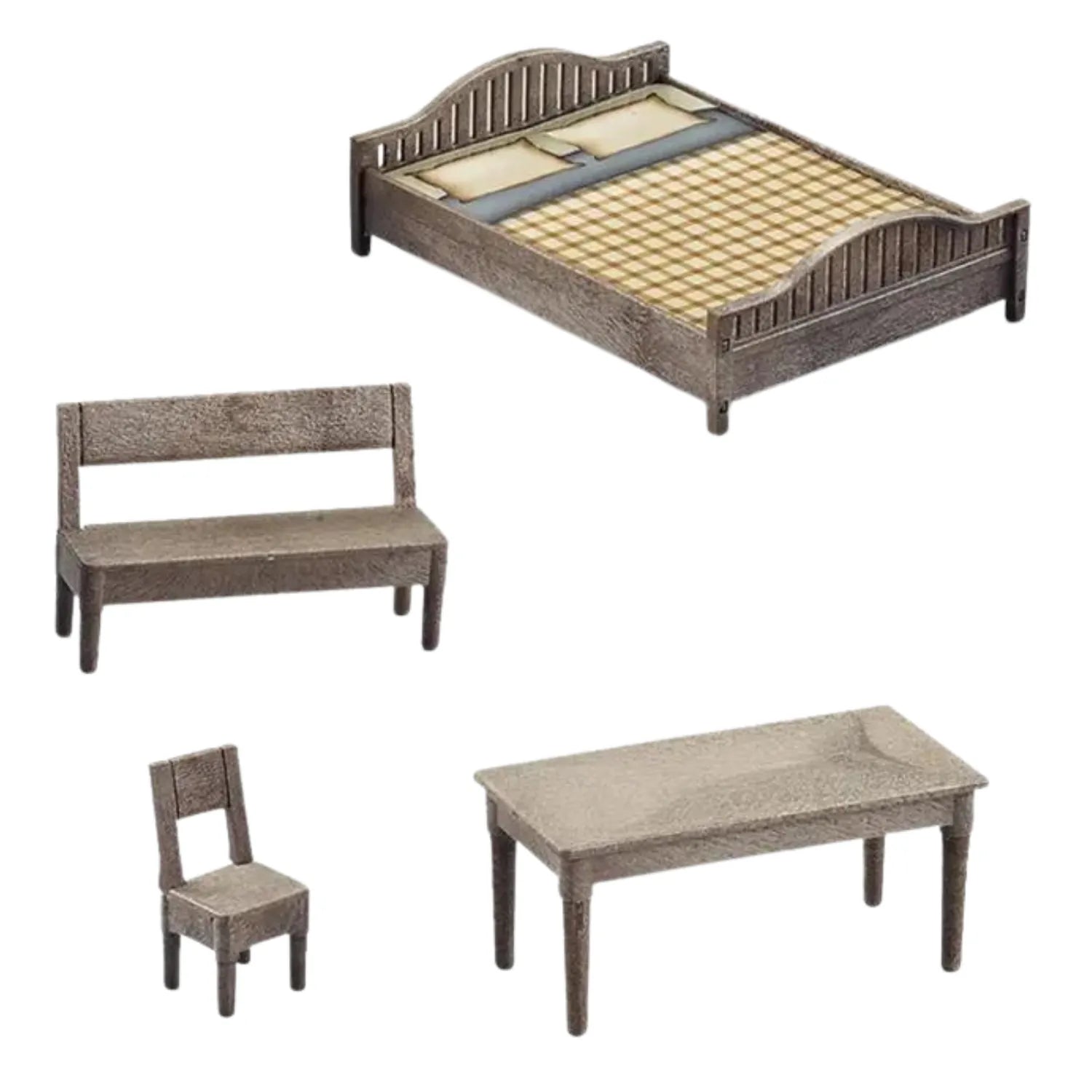- меблі (ліжко, 2 стільці, стіл, лавка)