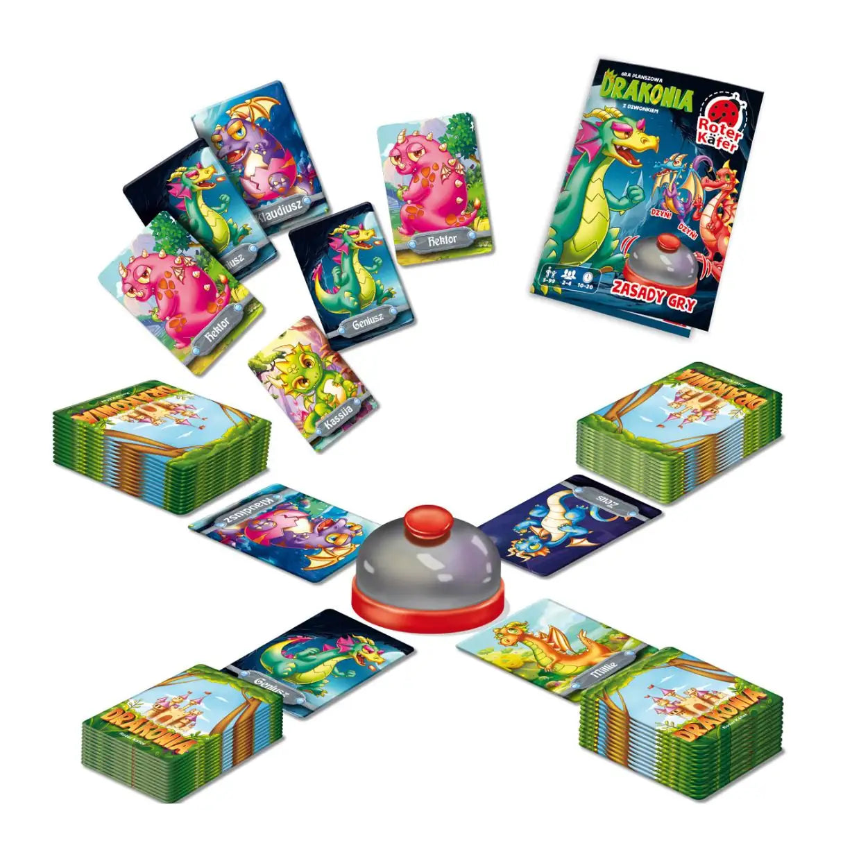 Захоплива настільна гра «Драконія з дзвіночком» – це фантастична гра для всієї родини, яка поєднує в собі швидкість реагування зі стратегічними елементами. Барвисті картки із зображенням чарівних драконів та чарівного дзвіночка створюють незабутні враження під час кожної гри.