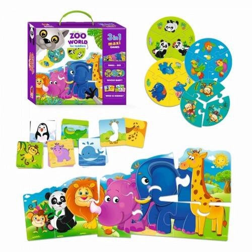 «Зоопарк – для дошкільнят» – це розгорнута гра, що складається з 3 наборів пазлів , які є чудовим інструментом для розвитку уяви та знань дошкільнят.