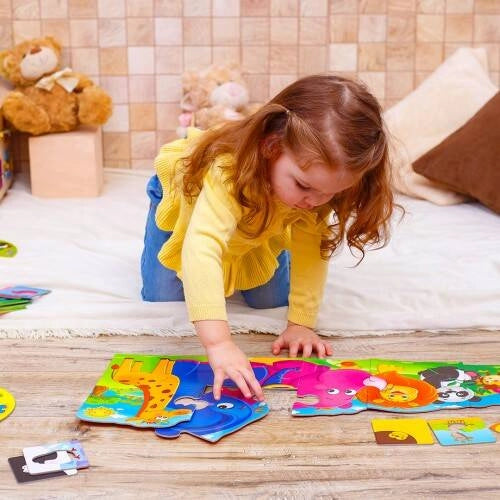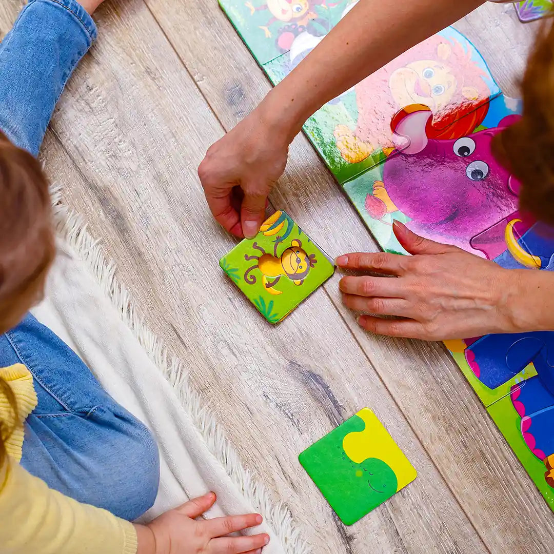 2. Пазл з гігантськими тваринами – ще одна захоплива частина набору. Це чудова вправа для розвитку навичок лічби, а також можливість обговорити кожну тварину, описуючи її характеристики.