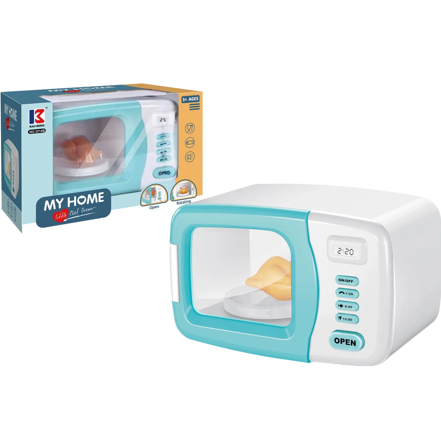 Іграшка імітує справжню мікрохвильову піч. Дверцята можна відкривати, класти продукти та встановлювати час на панелі керування. Іграшка має звукові ефекти , такі як час роботи мікрохвильової печі, сигнал « готово » та звуки приготування, що робить гру ще реалістичнішою.