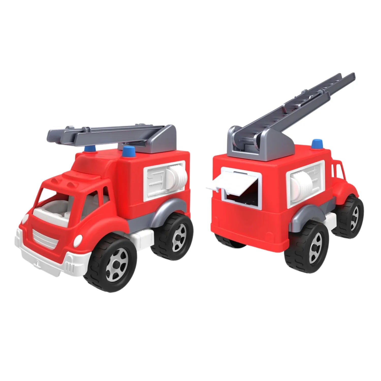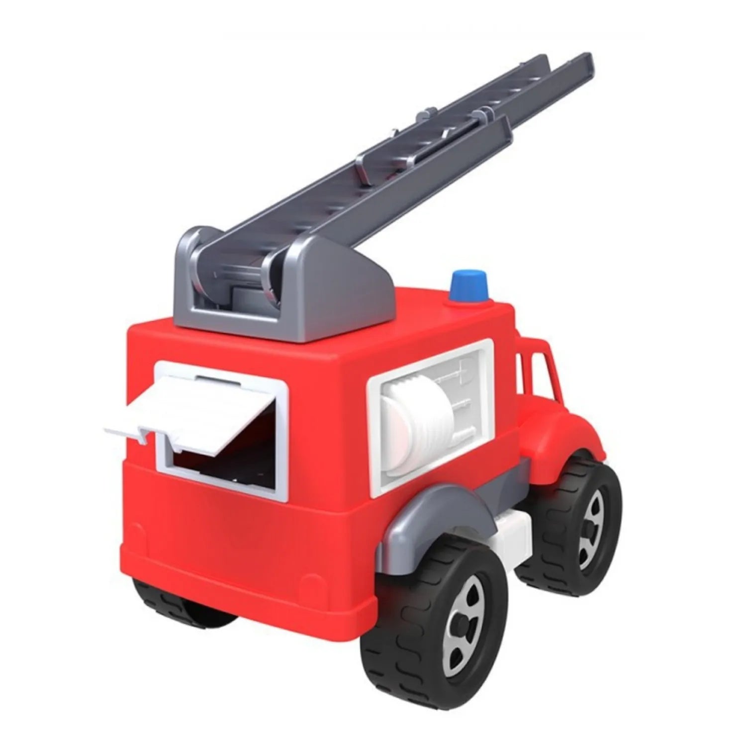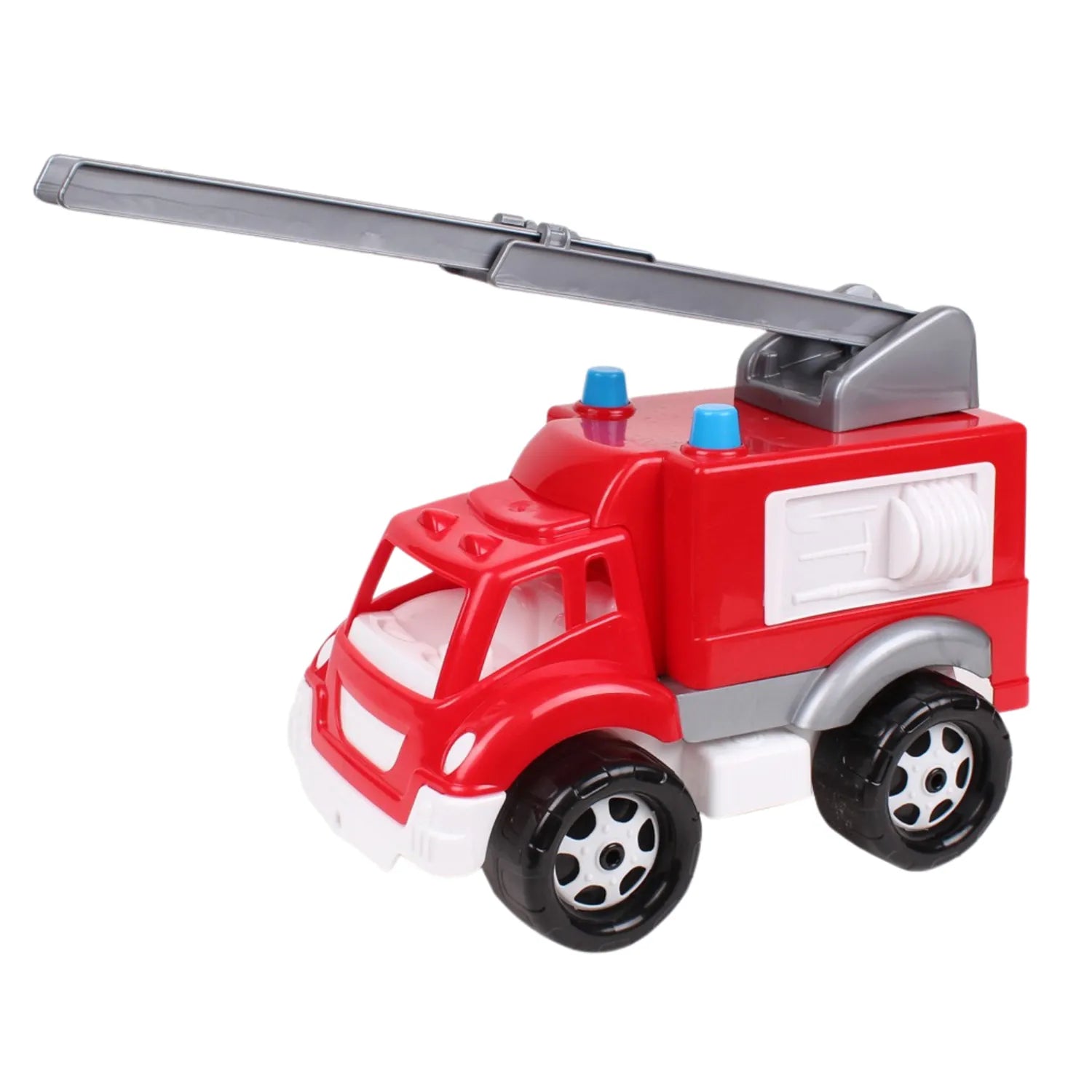 Ця пожежна машина перенесе вашу малечу у світ рятувальних операцій. Пожежні драбини, довжиною 40 см , можна висувати та піднімати, що дозволяє проводити реальні пожежогасіння. Іграшка має задні двері, що відкриваються, у вантажному відсіку , що забезпечує легкий доступ до пожежних інструментів та обладнання. Це заохочує дітей розвивати свою уяву та створювати власні сценарії порятунку.