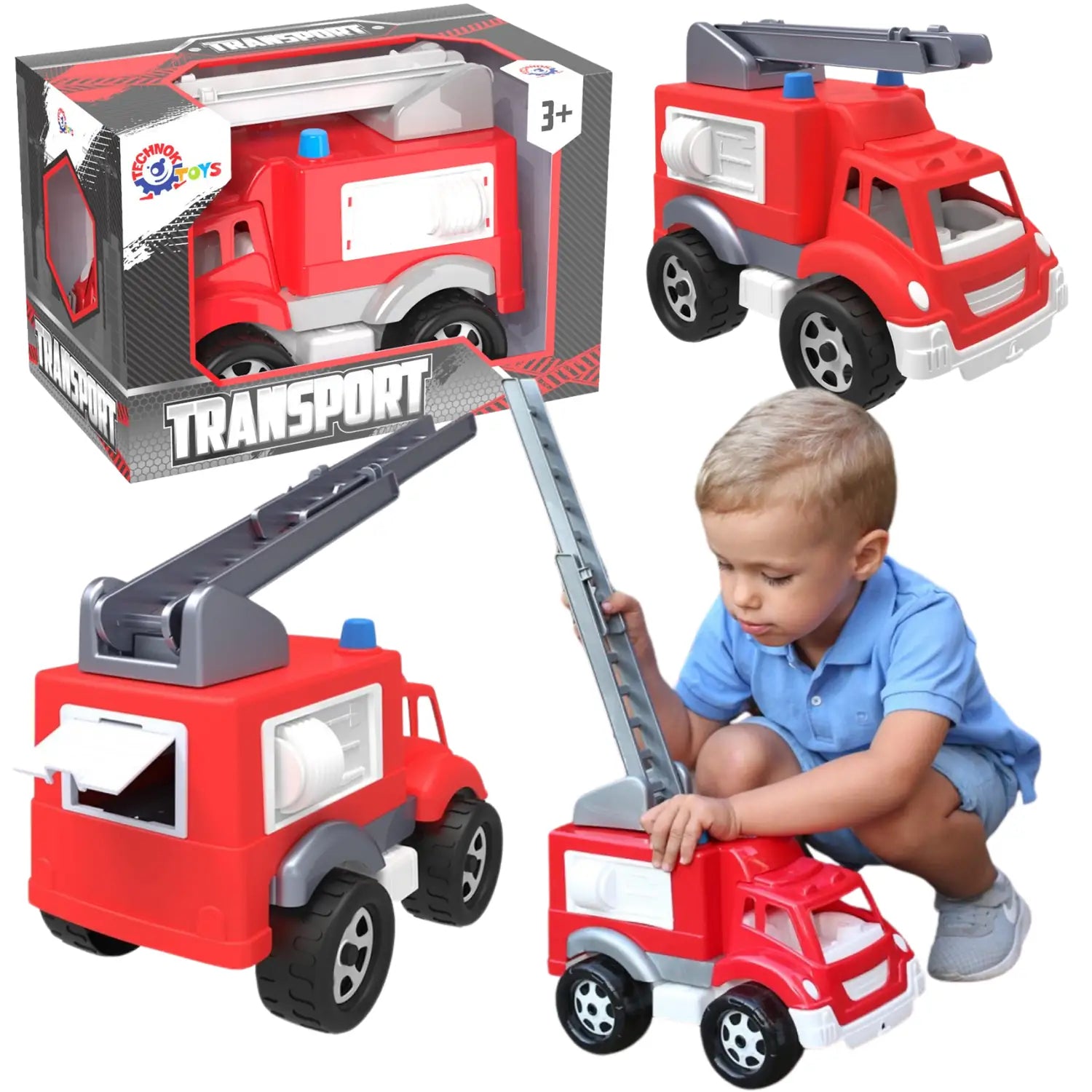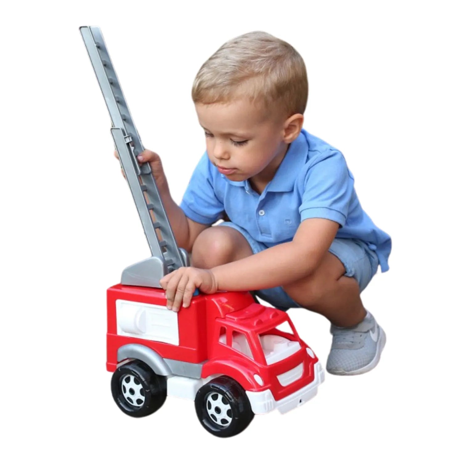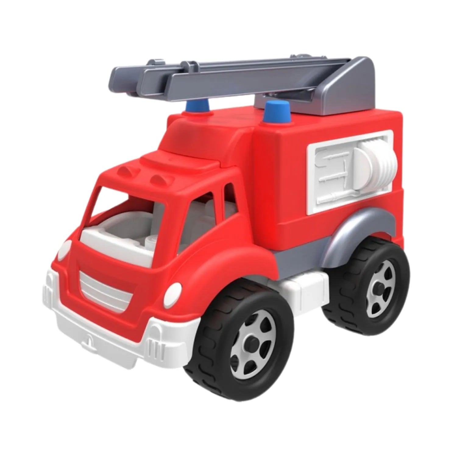 Ця пожежна машина перенесе вашу малечу у світ рятувальних операцій. Пожежні драбини, довжиною 40 см , можна висувати та піднімати, що дозволяє проводити реальні пожежогасіння. Іграшка має задні двері, що відкриваються, у вантажному відсіку , що забезпечує легкий доступ до пожежних інструментів та обладнання. Це заохочує дітей розвивати свою уяву та створювати власні сценарії порятунку.