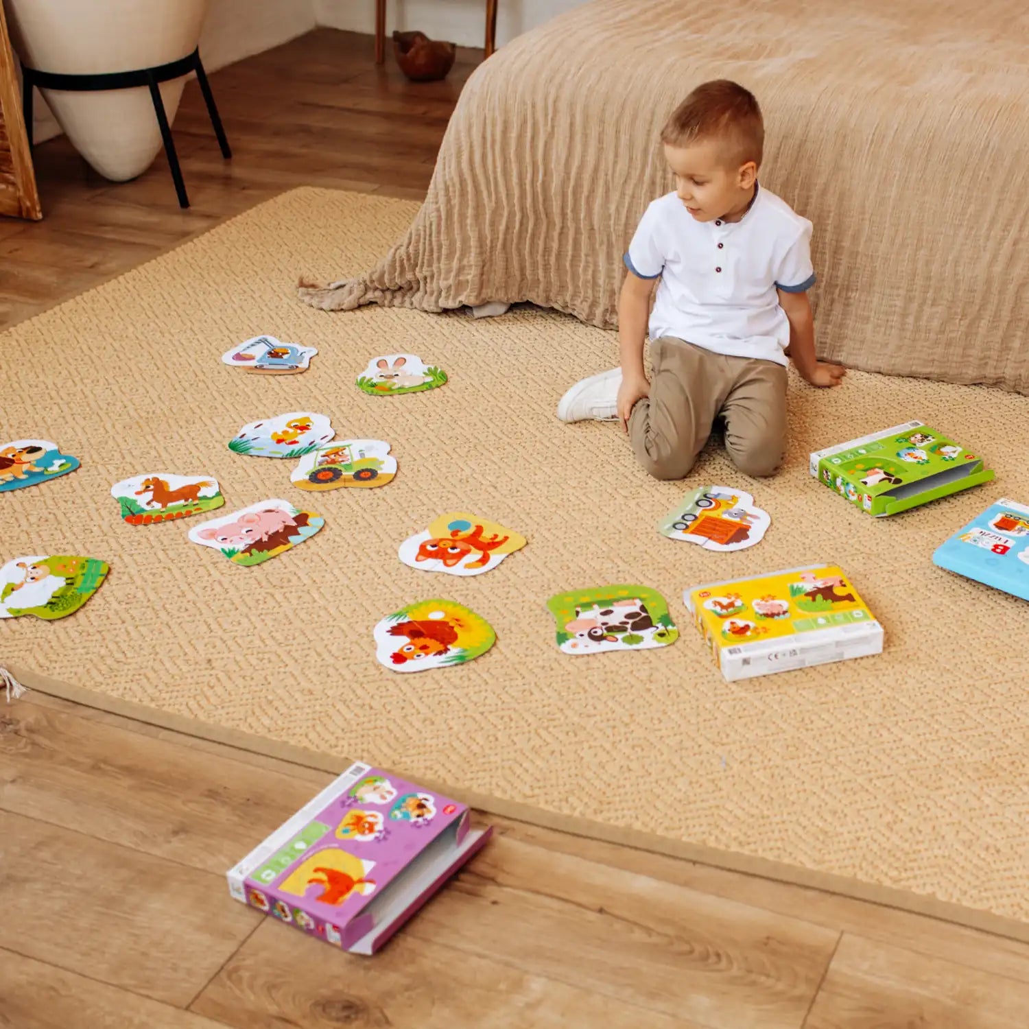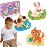 Три рівні складності: набір містить три пазли з різною кількістю деталей: 2, 3 та 4. Це дозволяє навіть найменшим легко брати участь, тоді як старші діти знайдуть завдання, адаптоване до їхніх навичок.