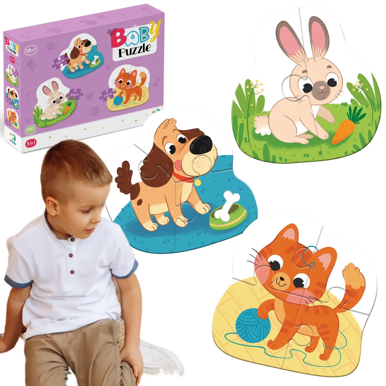Пазл 3-в-1 2-3-4 елементи "Тварини" Три пазли Домашні тварини 300395