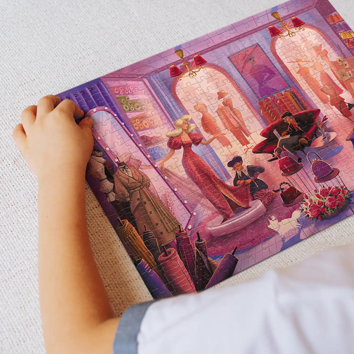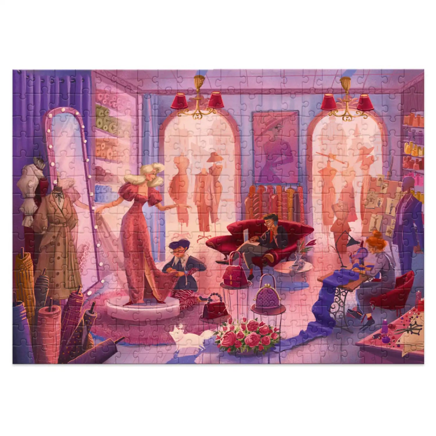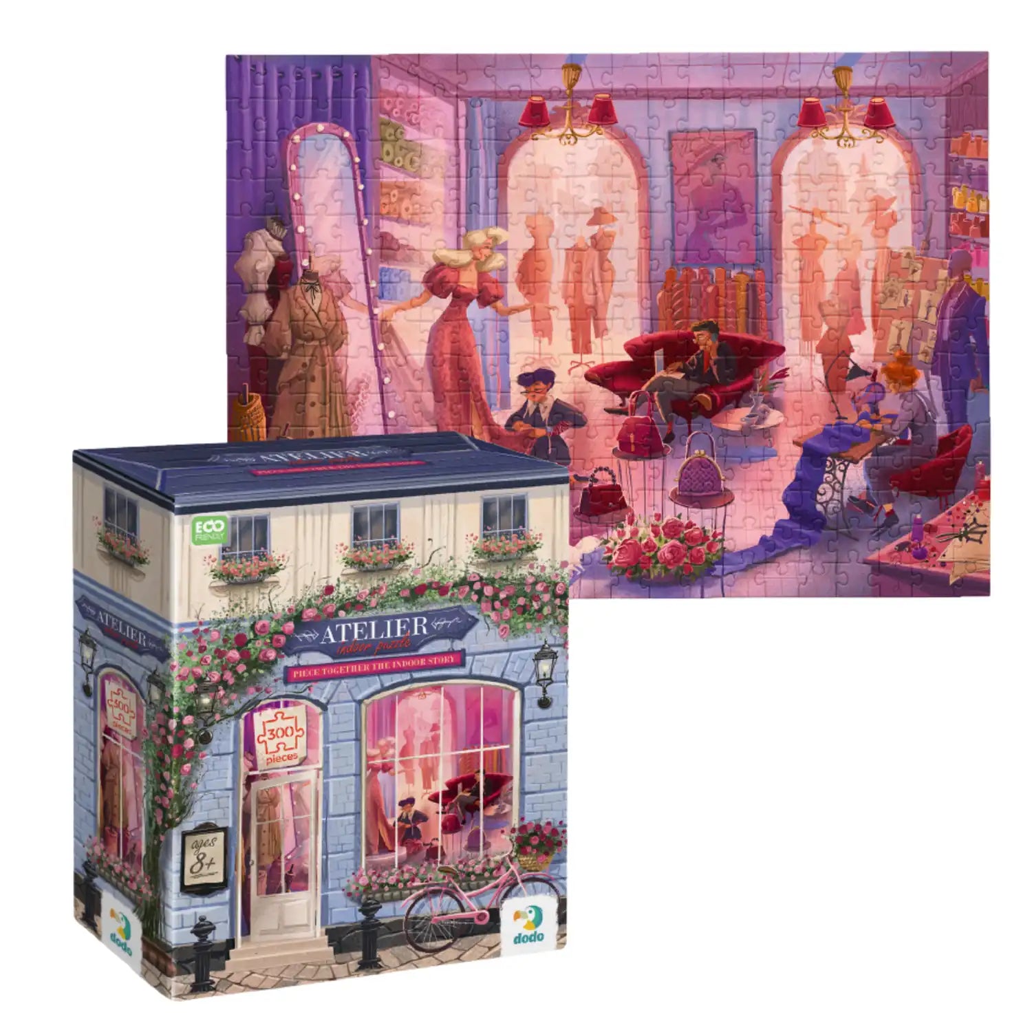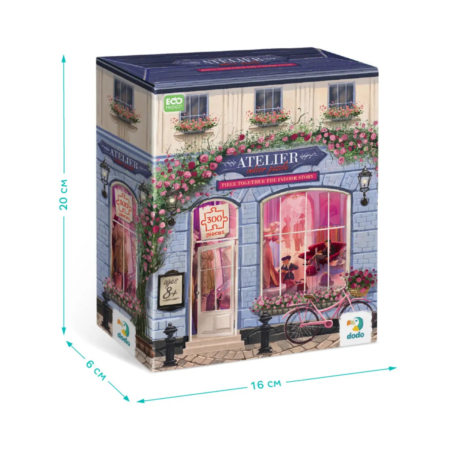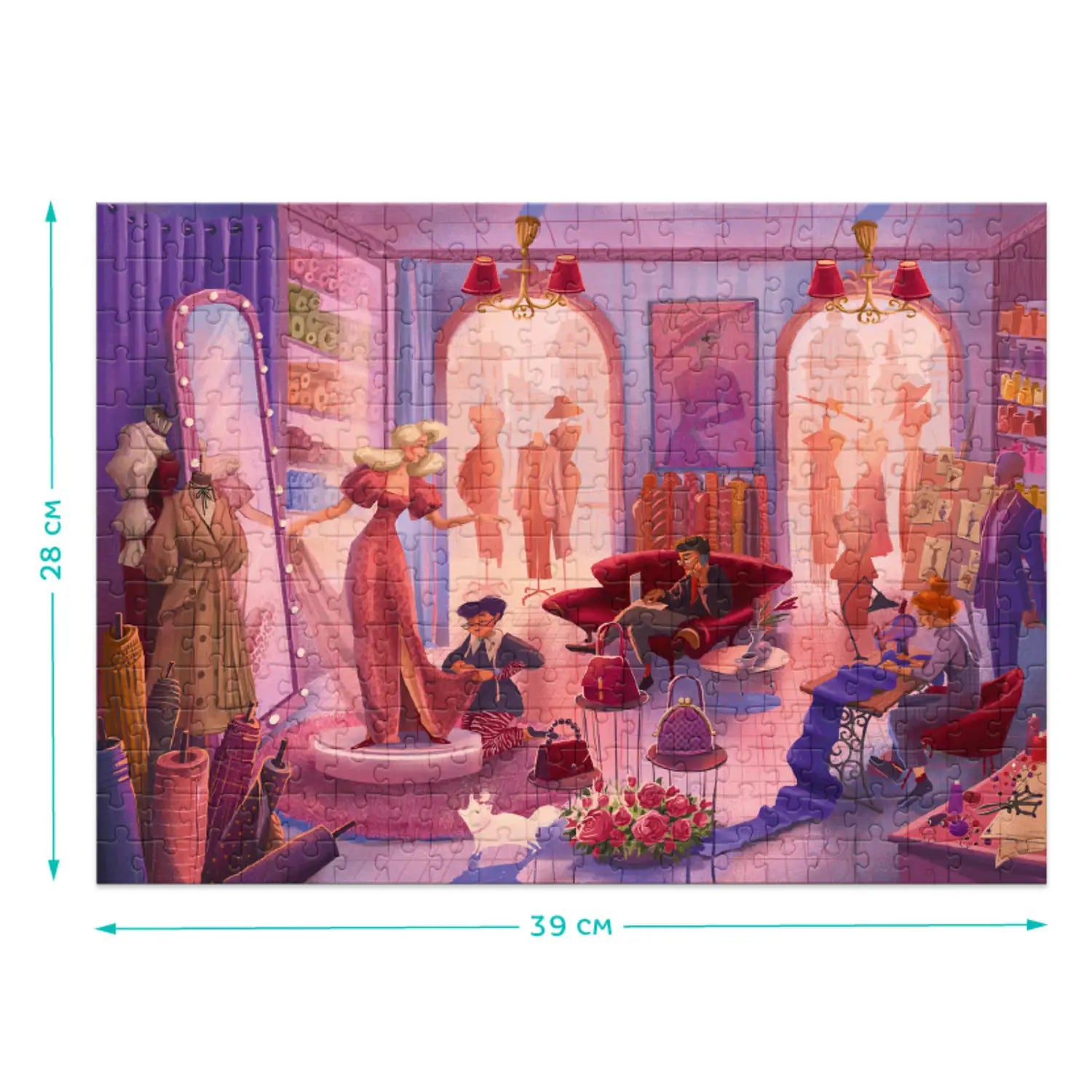 Пазл «Ательє» перенесе вас у чарівну подорож до чарівної майстерні кравця. Зображення з 300 елементів зображує інтер'єр майстерні , де створюються чудові сукні. Це не лише унікальний виклик для любителів пазлів, а й подорож у чарівний світ.