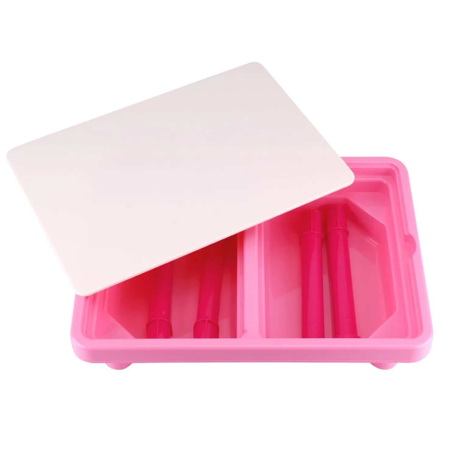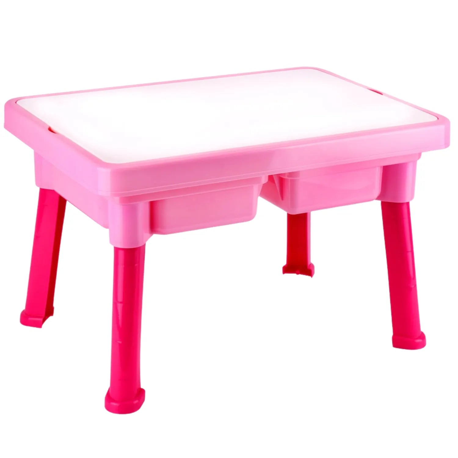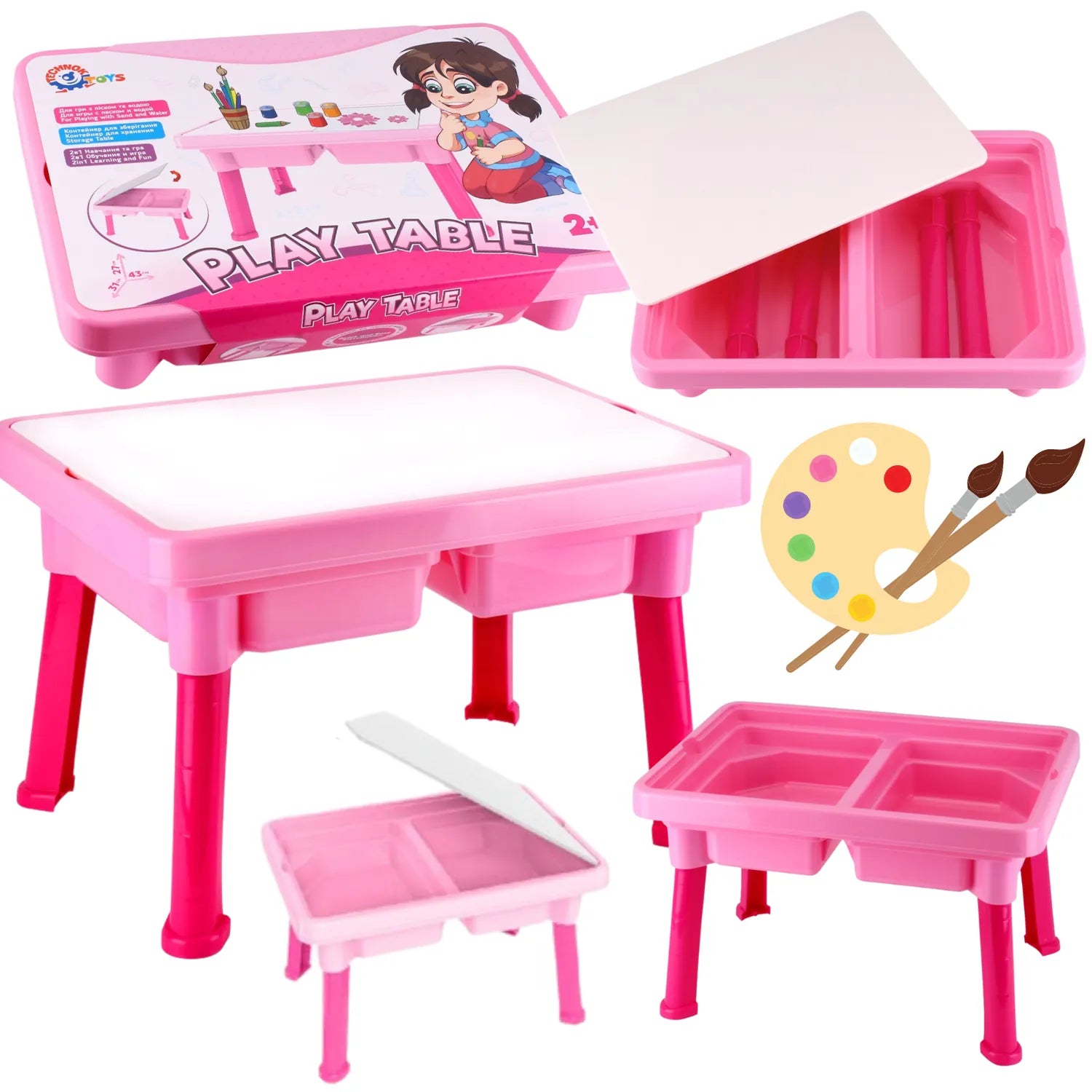 Стіл складається з каркаса з двома заглибленнями, кришки та ніжок. Міцна конструкція забезпечує довговічність, залишаючись при цьому простим у використанні. Цей практичний стіл може служити зоною для малювання, творчим простором з глиною для ліплення або кінетичним піском, а також місцем для всіляких цікавих занять.