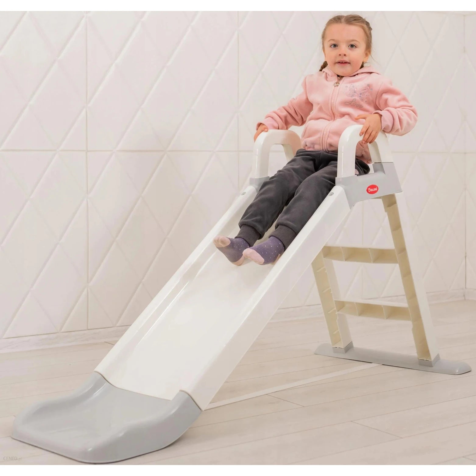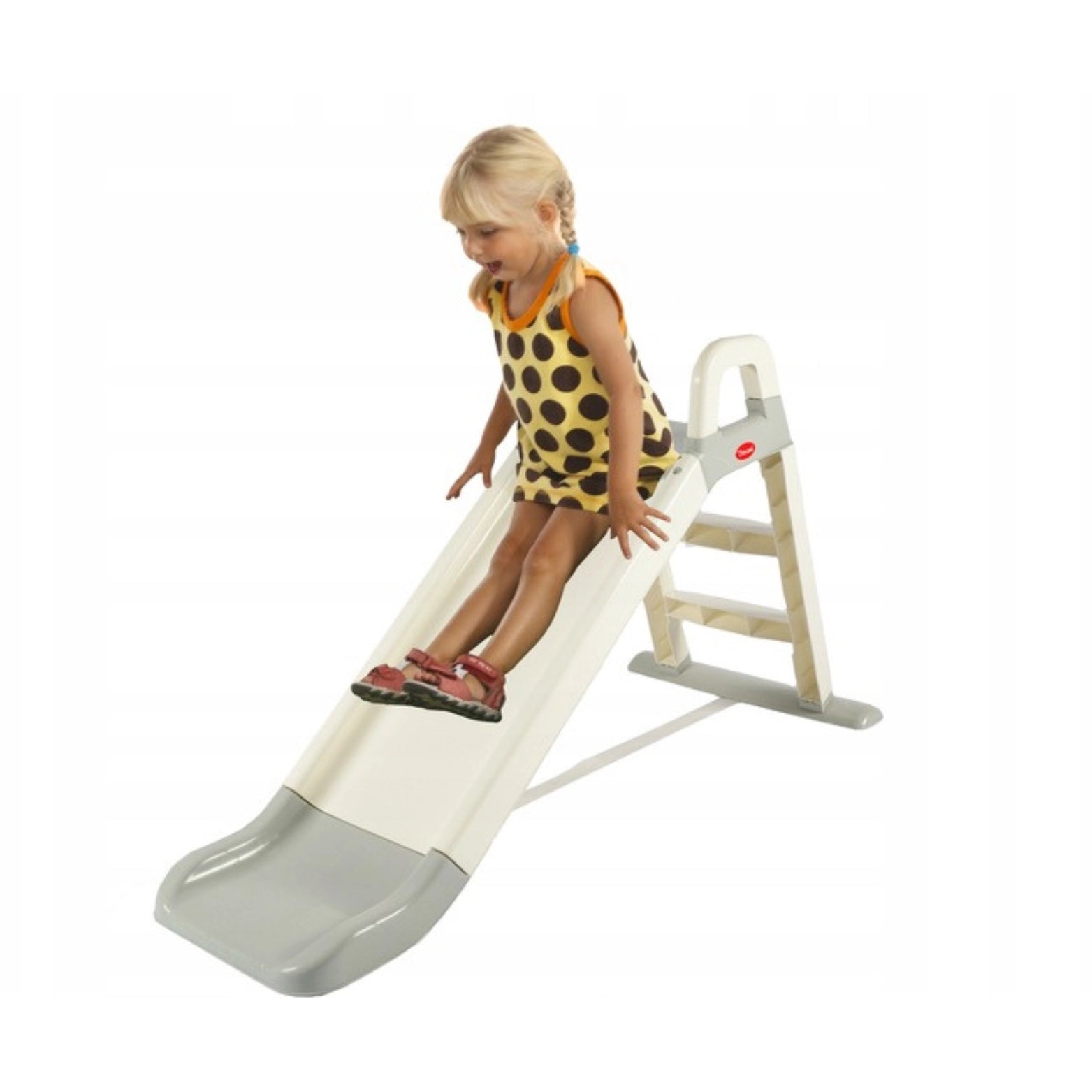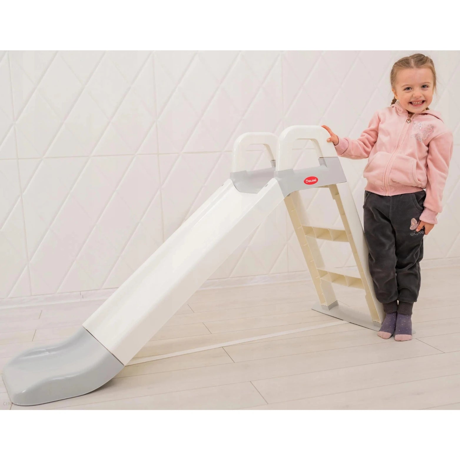 Дитяча гірка білого та сірого кольорів Це надійна та стабільна конструкція, яка забезпечить безліч розваг та задоволення для наймолодших. Завдяки зручній драбині, підйом гіркою легкий навіть для найменших дітей. Високі бічні стінки та заокруглений кінець забезпечують безпеку під час ковзання, а також додають елемент азарту та гострих відчуттів.