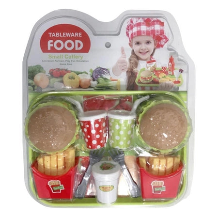 Дитячий набір імітацій їжі та напоїв: картопля фрі, бургери, напої, столові прибори