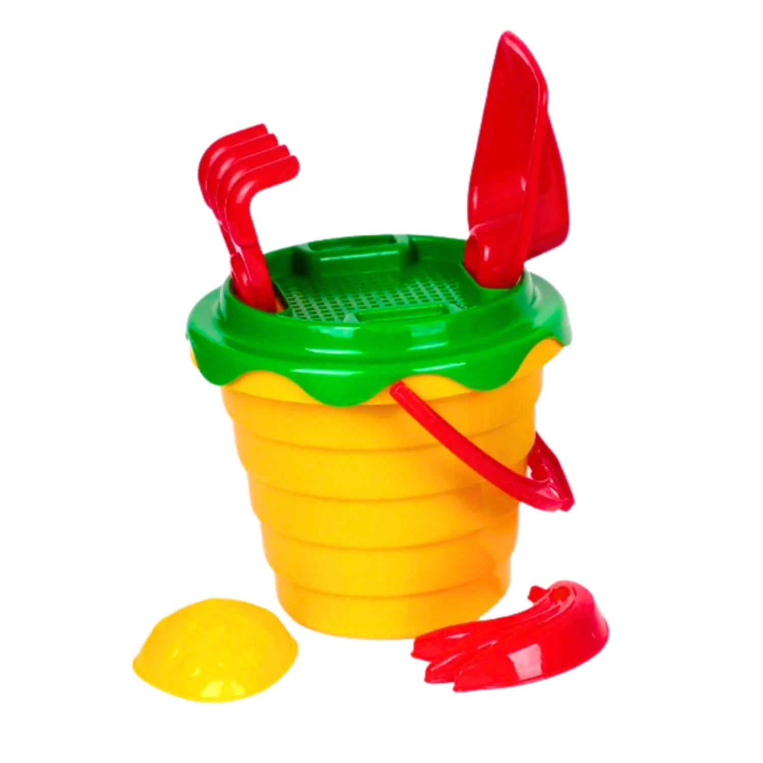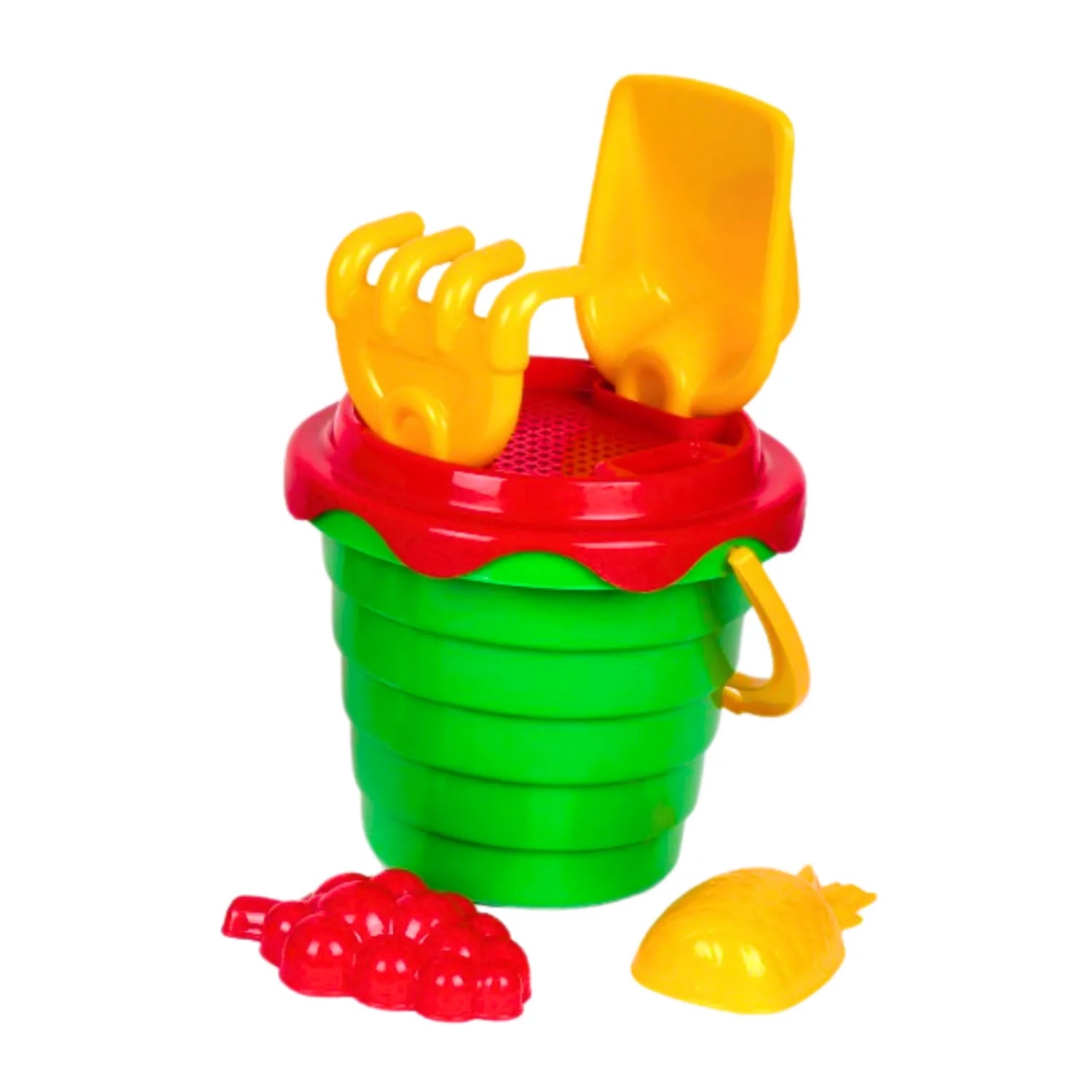 Виготовлені з найякісніших матеріалів , ці іграшки витримають будь-які умови та забезпечать безпечне використання. Набір містить відро з рельєфним візерунком, лопату, граблі, дві формочки та ситечко для захисту предметів, що переносяться у відрі. Контрастні кольори привертають увагу, а закруглені форми роблять цю іграшку підходящою для всіх.