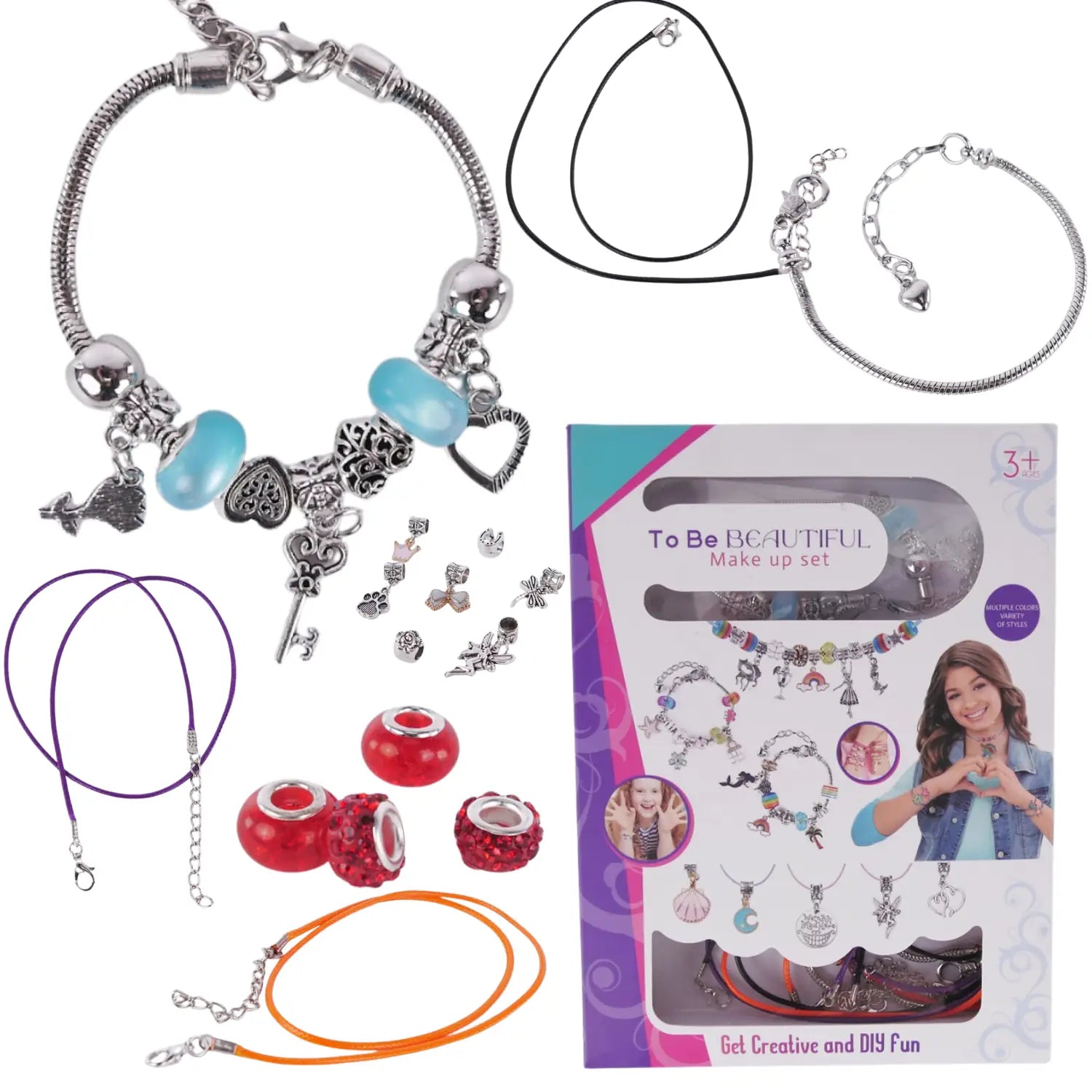 Творча гра: Набір містить різноманітні матеріали, такі як різнокольорові намистини, ланцюжки, нитки та прикраси, які дозволяють дітям створювати браслети відповідно до власних ідей та фантазій.