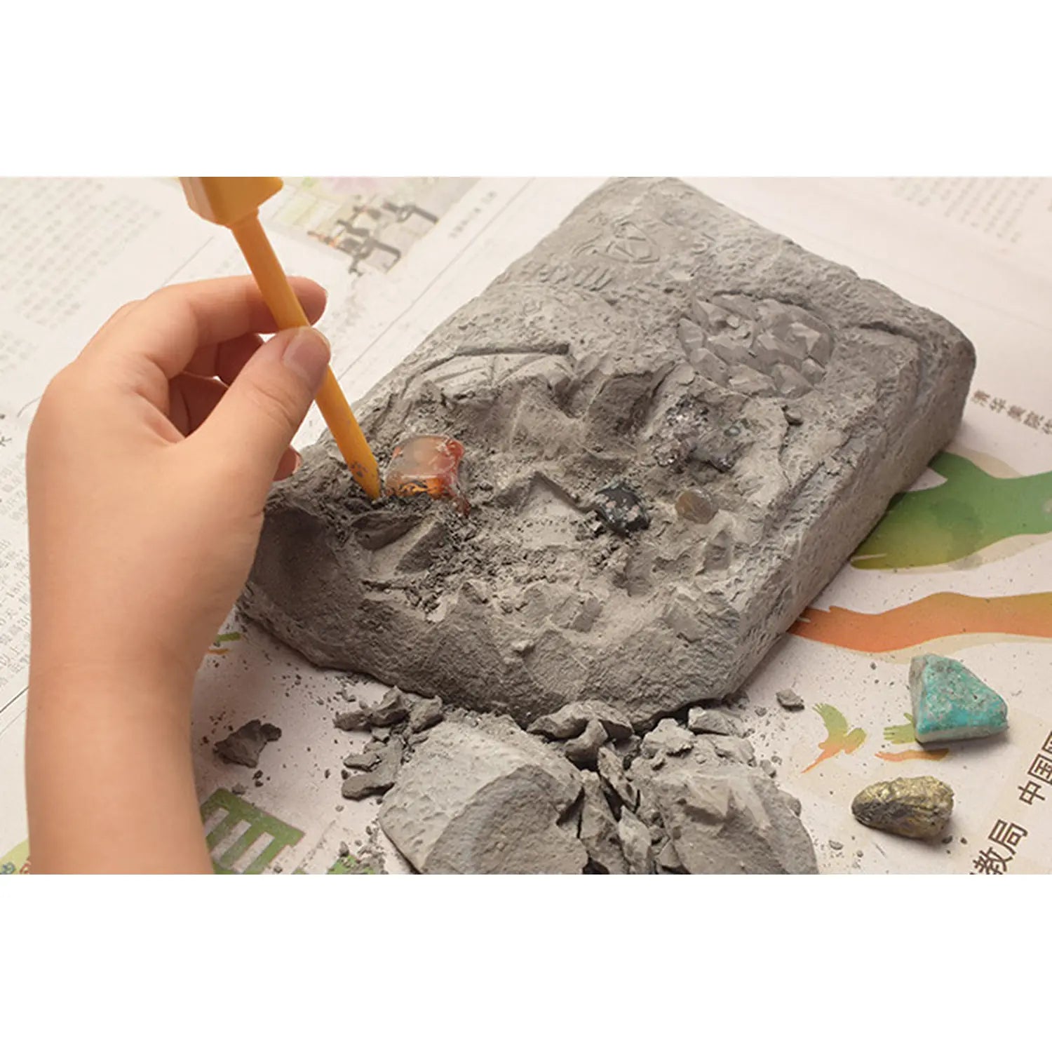 Цей набір кристалів для дітей містить спеціальні гіпсові блоки, які містять приховані кристали. Діти використовують інструменти, що входять до комплекту, такі як молоток і зубило, щоб витягувати кристали з породи. Вони також можуть досліджувати різні шари блоку, виявляючи більше кристалів на різній глибині!