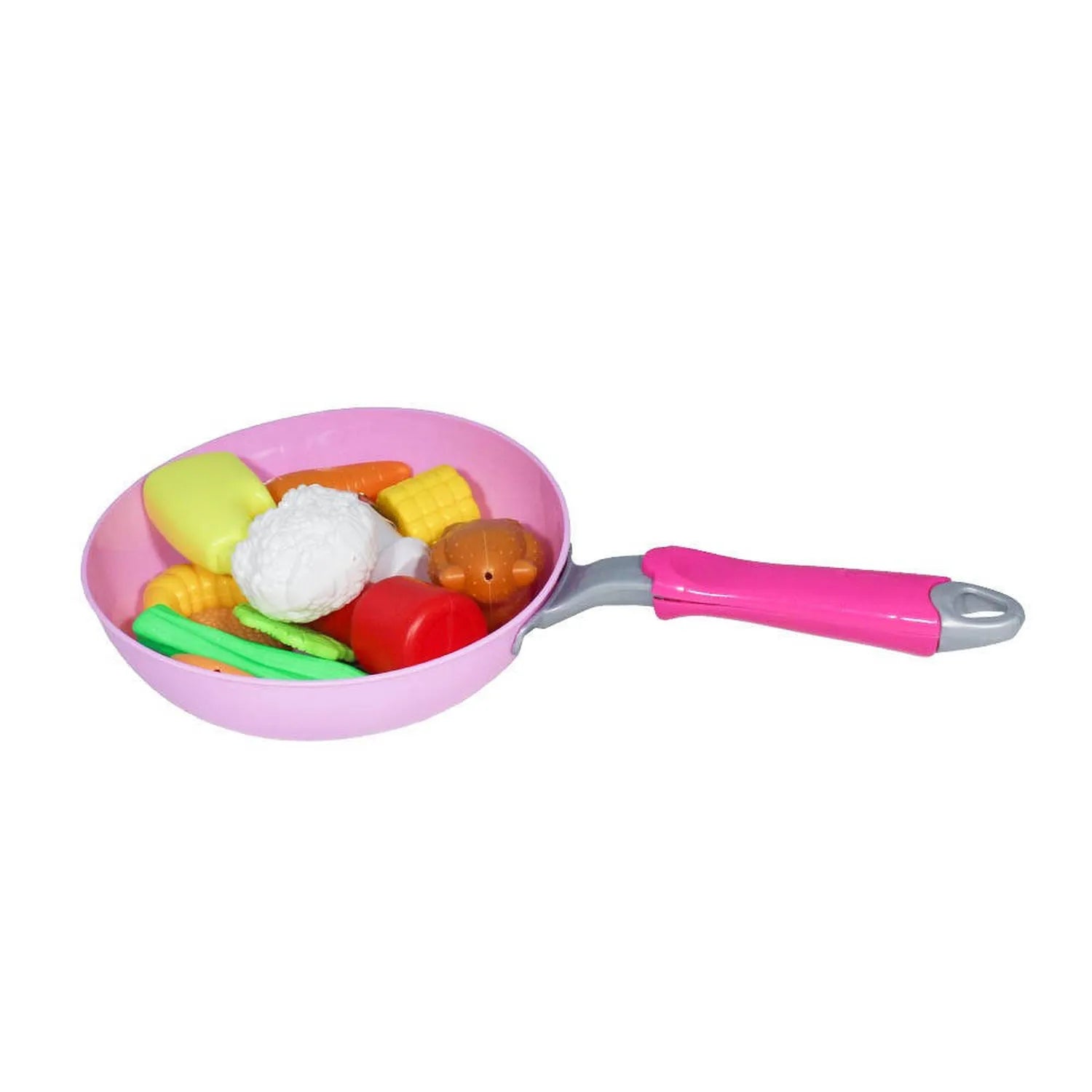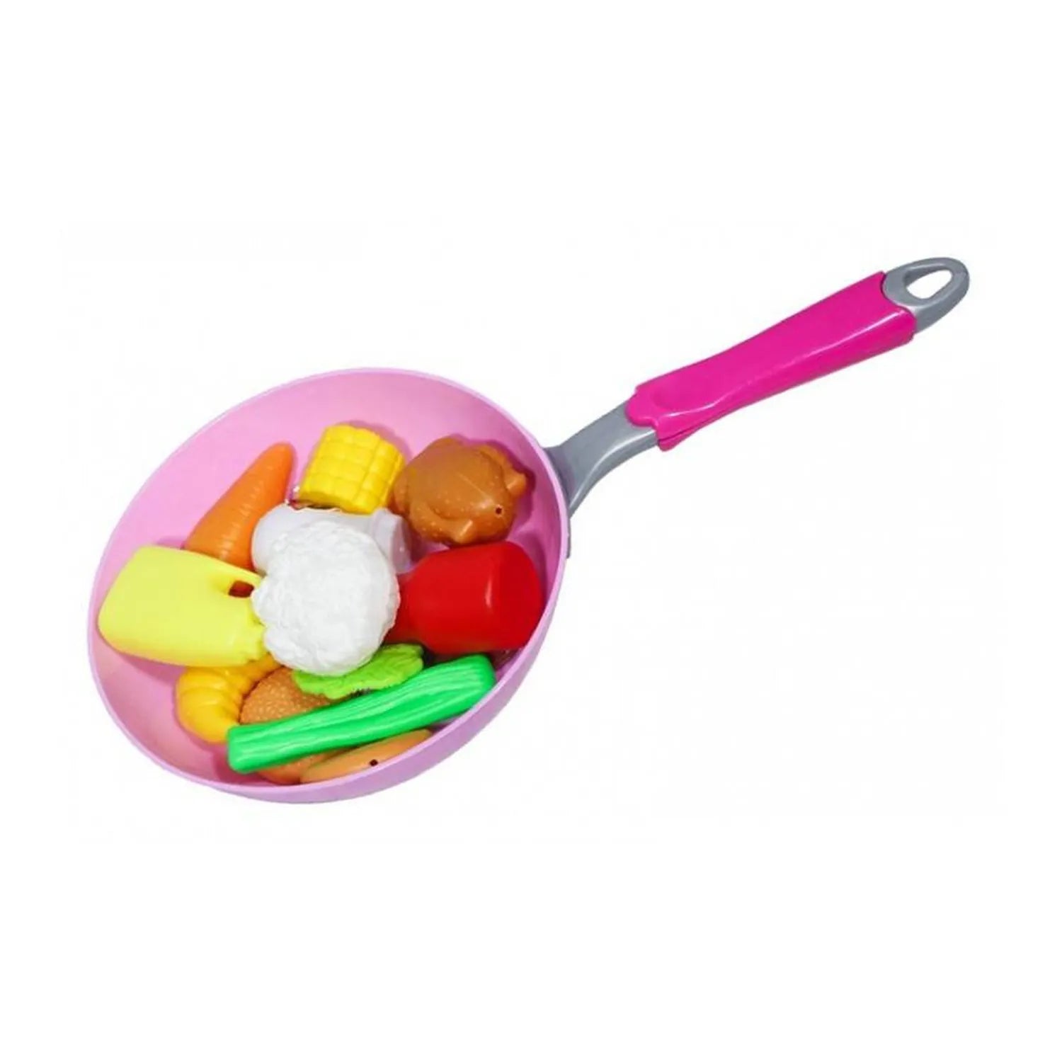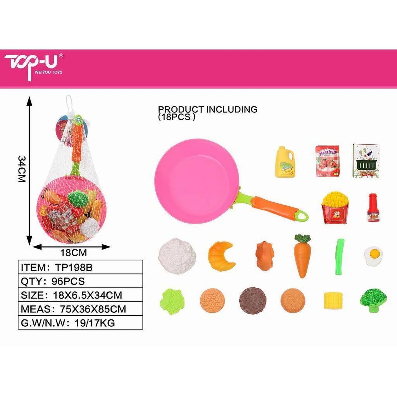Цей повний кухонний набір із 18 предметів забезпечить години творчої гри. Набір містить рожеву сковороду з яскравою ручкою та широкий асортимент мініатюрних продуктів, включаючи овочі, фрукти, молочні продукти та інші кухонні предмети. Усі деталі виготовлені з високоякісного, безпечного для дітей пластику. Іграшка упакована в практичну сітчасту сумку для зручного зберігання та транспортування. Набір розвиває дрібну моторику, координацію рук і очей та заохочує до творчої рольової гри. Ідеально підходить для гри вдома, у дошкільному закладі або з однолітками.