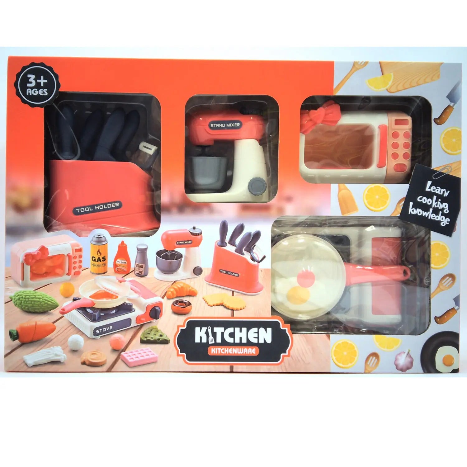 - Мікрохвильова піч – ще один реалістичний елемент набору. Діти можуть уявити, що розігрівають їжу або готують закуски за допомогою мікрохвильової печі. Це чудова можливість розвинути їхню уяву та дізнатися про різні процеси приготування їжі.
