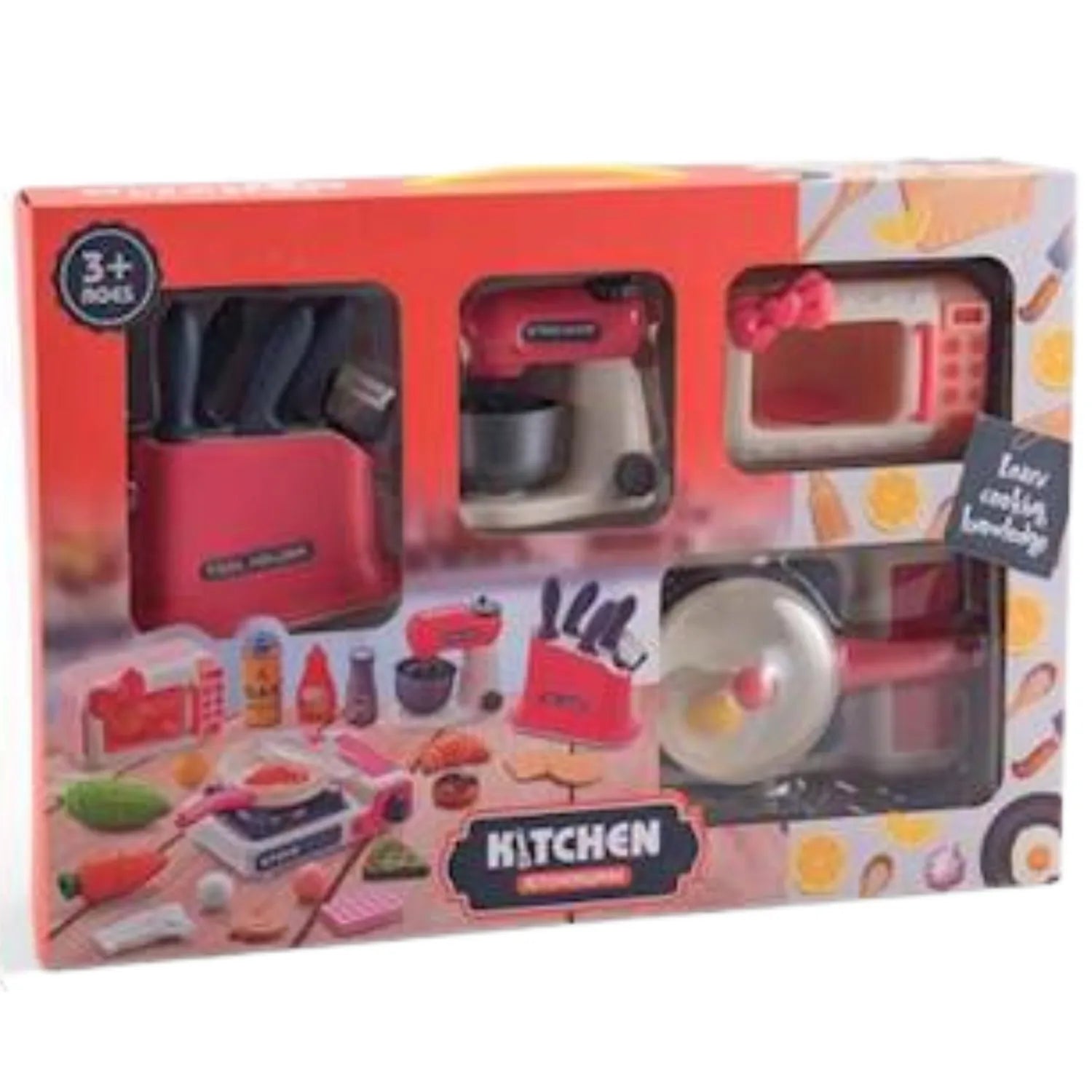 Дитячий кухонний набір – це ідеальний спосіб для малюків розвивати свою творчість та кулінарні навички. Цей повний набір включає набір ножів, міксер, індукційну варильну поверхню, мікрохвильову піч та аксесуари, такі як овочі, фрукти та печиво, які додають реалістичності та захопливості грі.