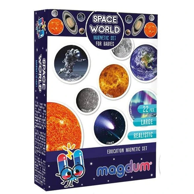 З магнітами ваша дитина зануриться у світ КОСМОСУ. Новий день означає нову гру, адже магнітів так багато. Гра з магнітами розвиває моторну координацію, мовлення, уяву, увагу та пам'ять . Ви можете взяти набір з собою у відпустку, адже все необхідне завжди під рукою. Магніти міцні, зручні для дитячих ручок та безпечні. Фігурки надійно магнітяться до будь-якого предмета (дошки, холодильника).
