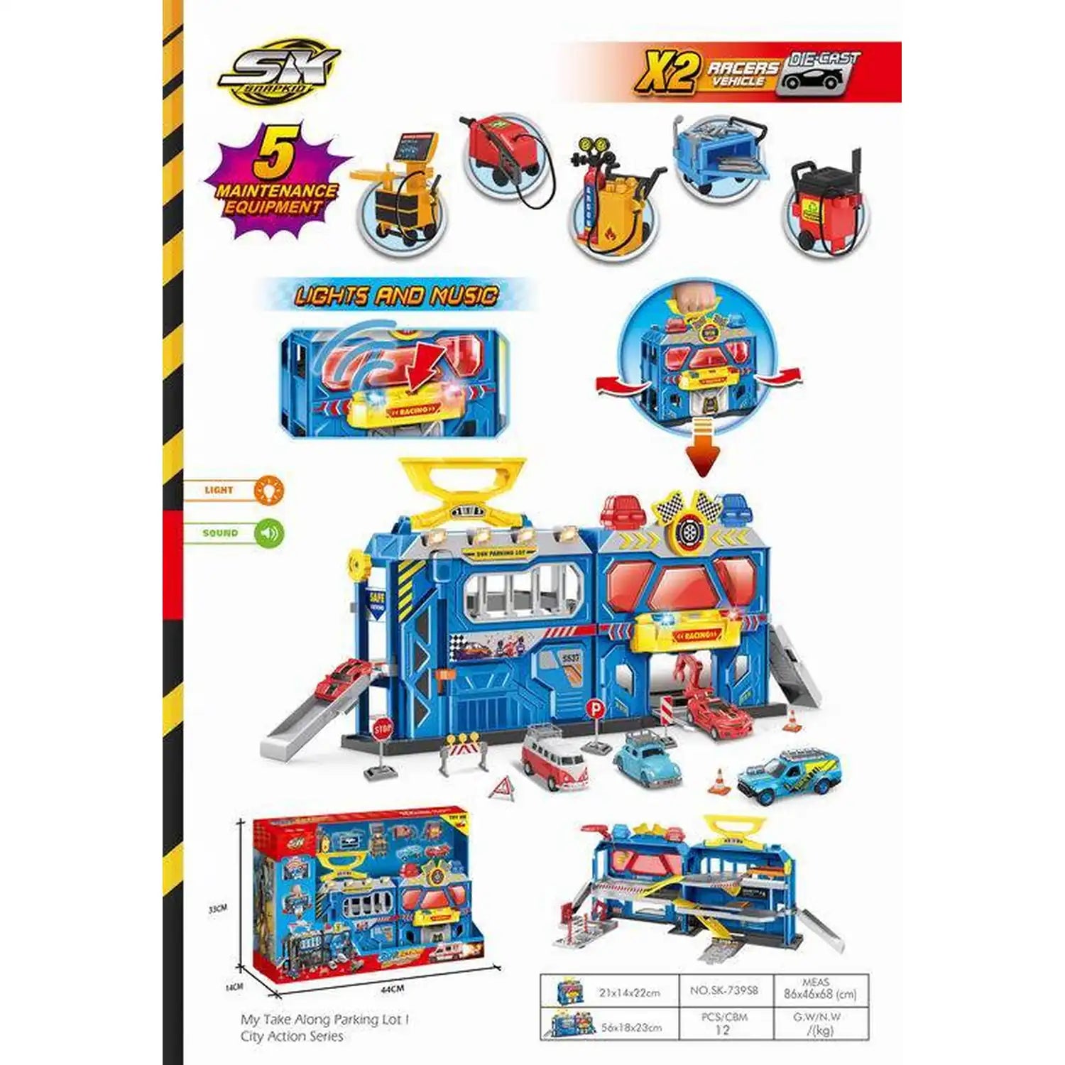 Набір включає повноцінний багатоповерховий паркінг з ліфтом, пандусами, заправною станцією та гаражем. Іграшка має світлові та звукові ефекти, що робить гру ще реалістичнішою та захопливішою. Набір містить п'ять одиниць гаражного обладнання та транспортних засобів. Міцна конструкція забезпечує тривалу гру, а складна конструкція дозволяє легко зберігати та транспортувати. Продукт розвиває координацію рук і очей, логічне мислення та соціальні навички під час гри з однолітками.