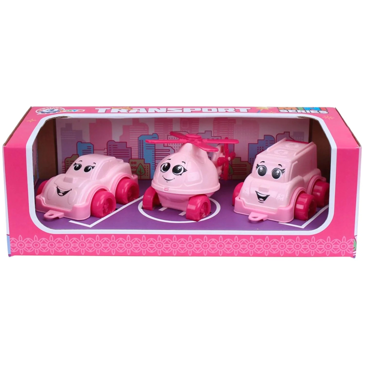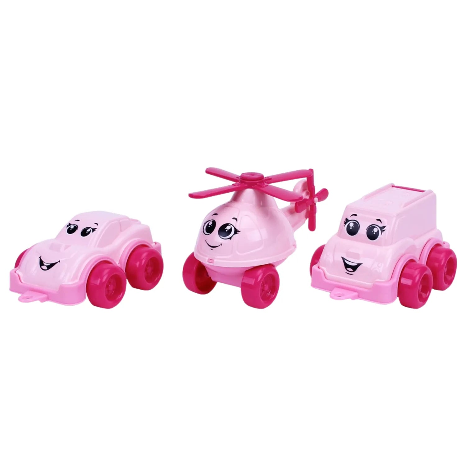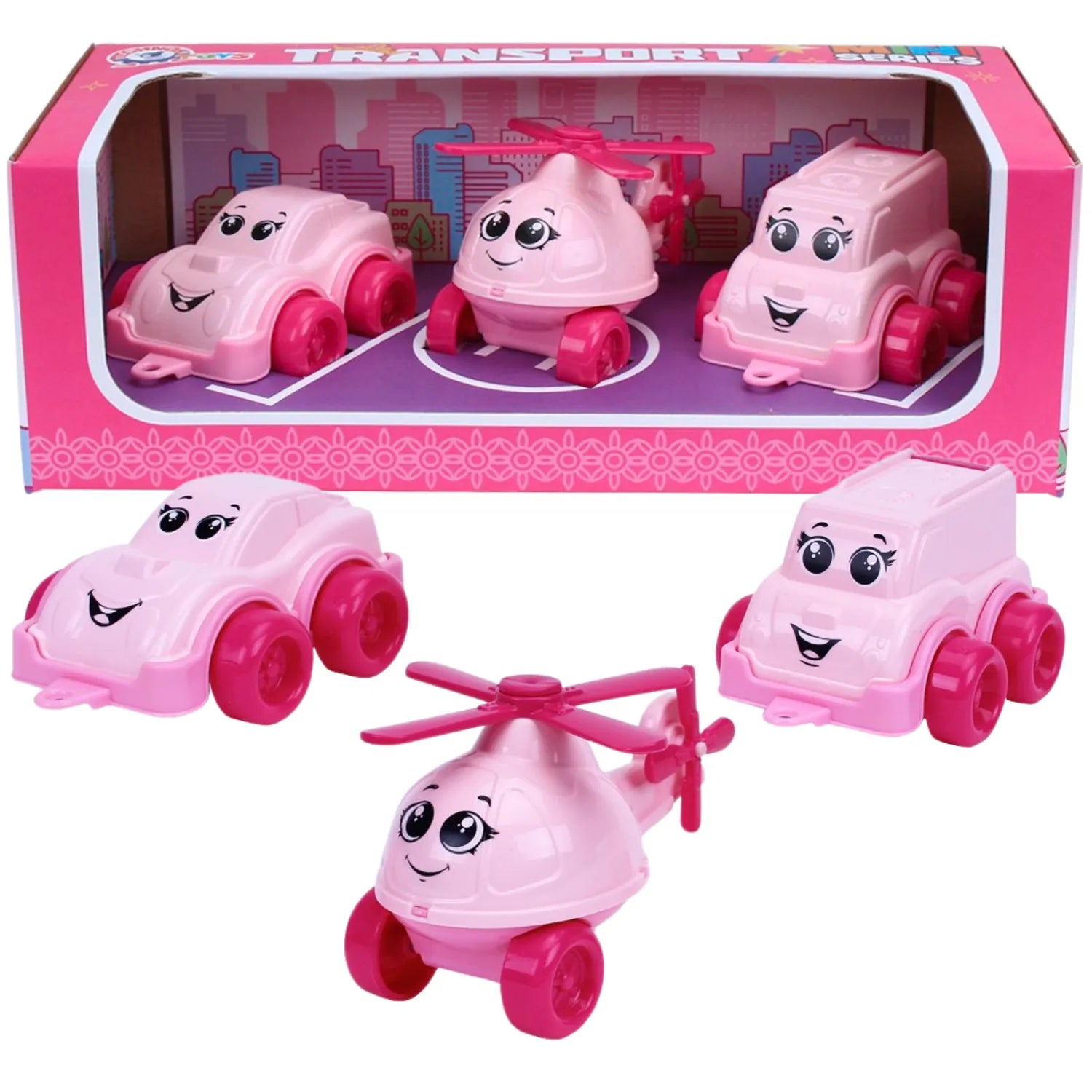 Рожевий автомобіль, набір транспортних засобів, міні-вертоліт, мікроавтобус, милі обличчя