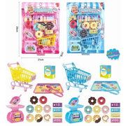 Цей повний набір для покупок включає функціональний кошик для покупок, різноманітні пончики та солодощі, касовий апарат зі звуками, ігрові гроші та додаткові аксесуари. Іграшка виготовлена з високоякісного, безпечного для дітей пластику. Компоненти ретельно виготовлені з увагою до деталей. Набір доступний у двох кольорах – рожевому та блакитному. Ідеально підходить для гри вдома, у дошкільному закладі або під час ігор з однолітками. Його легко мити та зберігати.