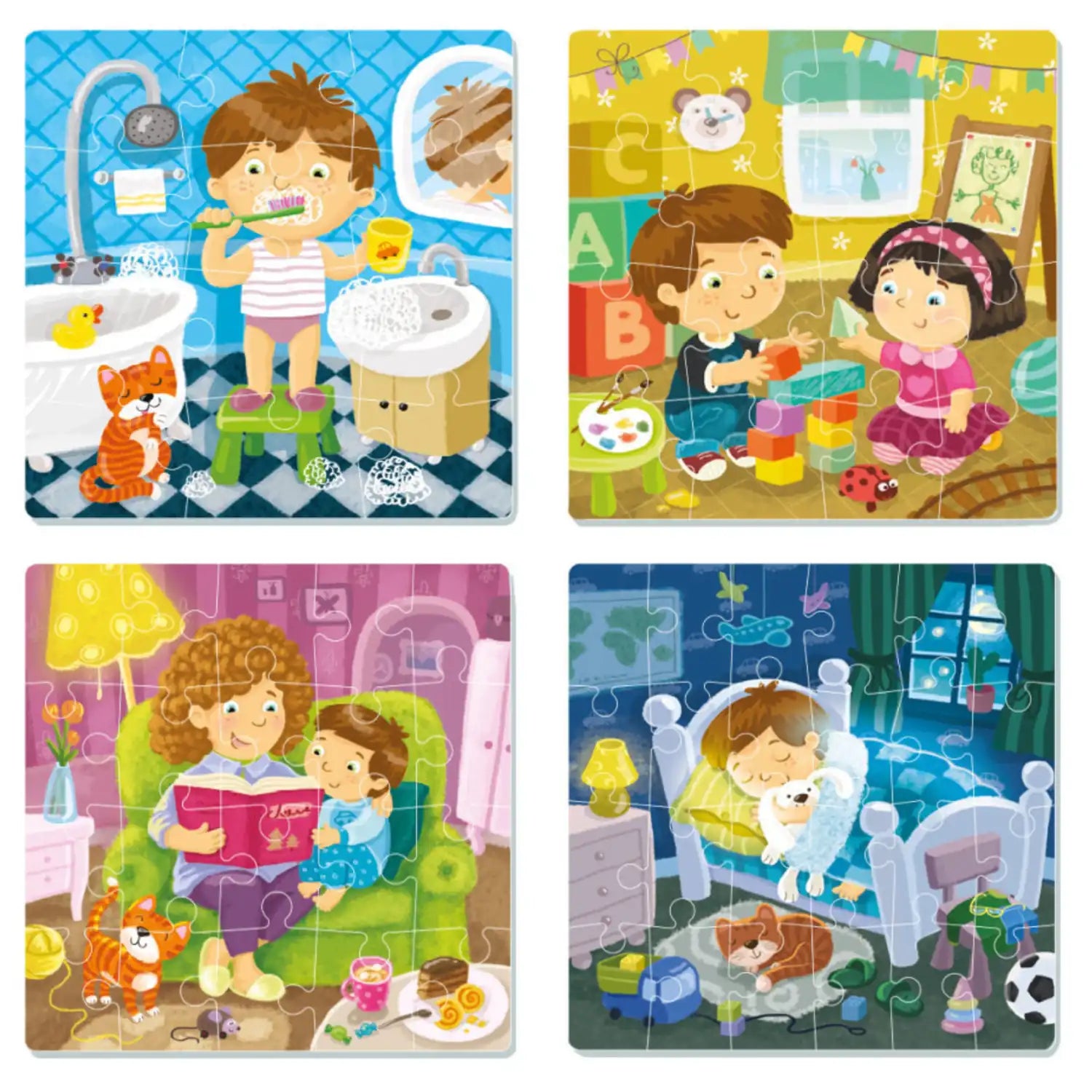 Навчальний набір пазлів 4-в-1 - Моє повсякденне життя для дітей, кольорові пазли 15x15 см, сертифіковані CE|EN 71, нові, 16 елементів у коробці