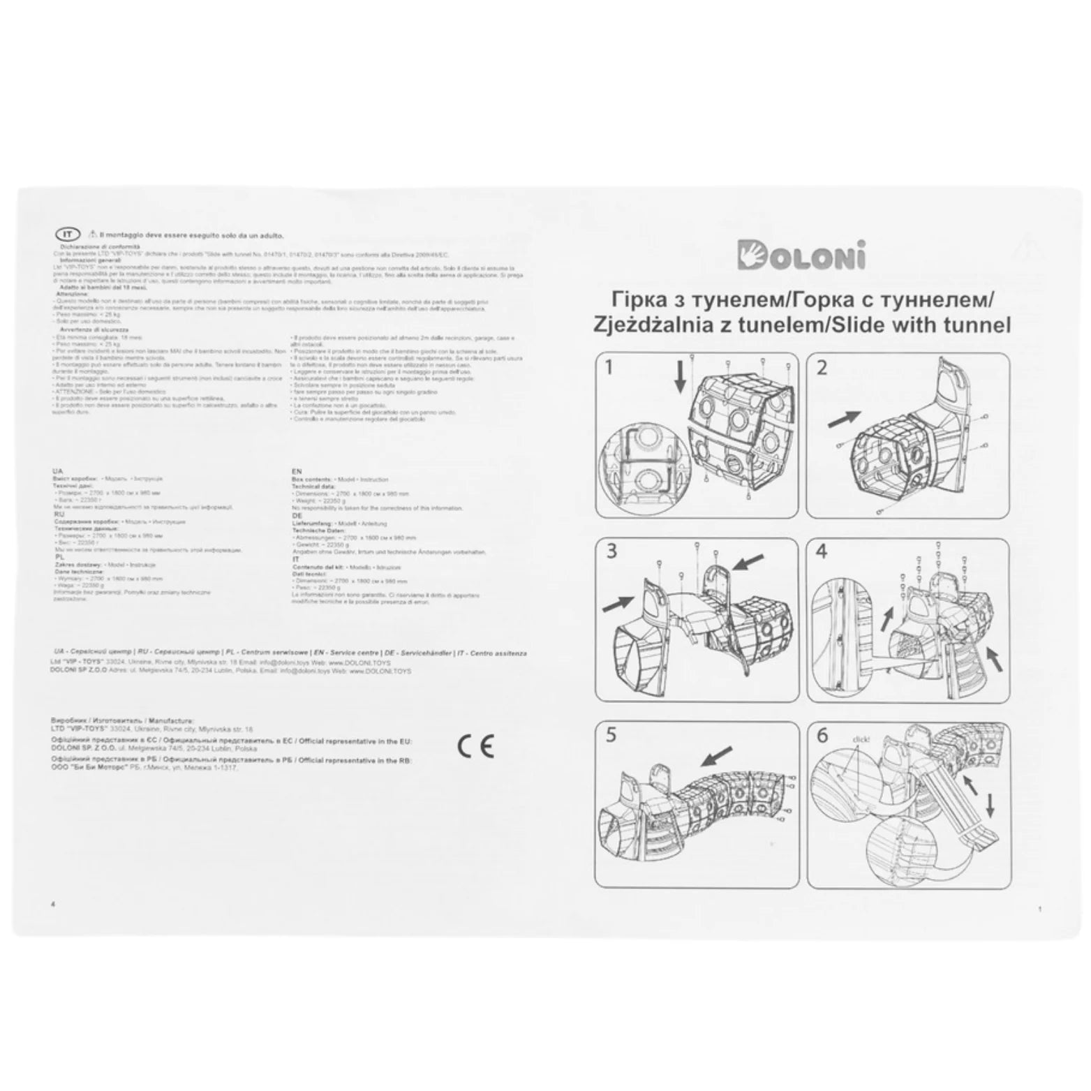 Гірка з тунелем для дітей - безпечна та барвиста розвага на свіжому повітрі, сертифікована відповідно до стандартів CE та EN 71.
